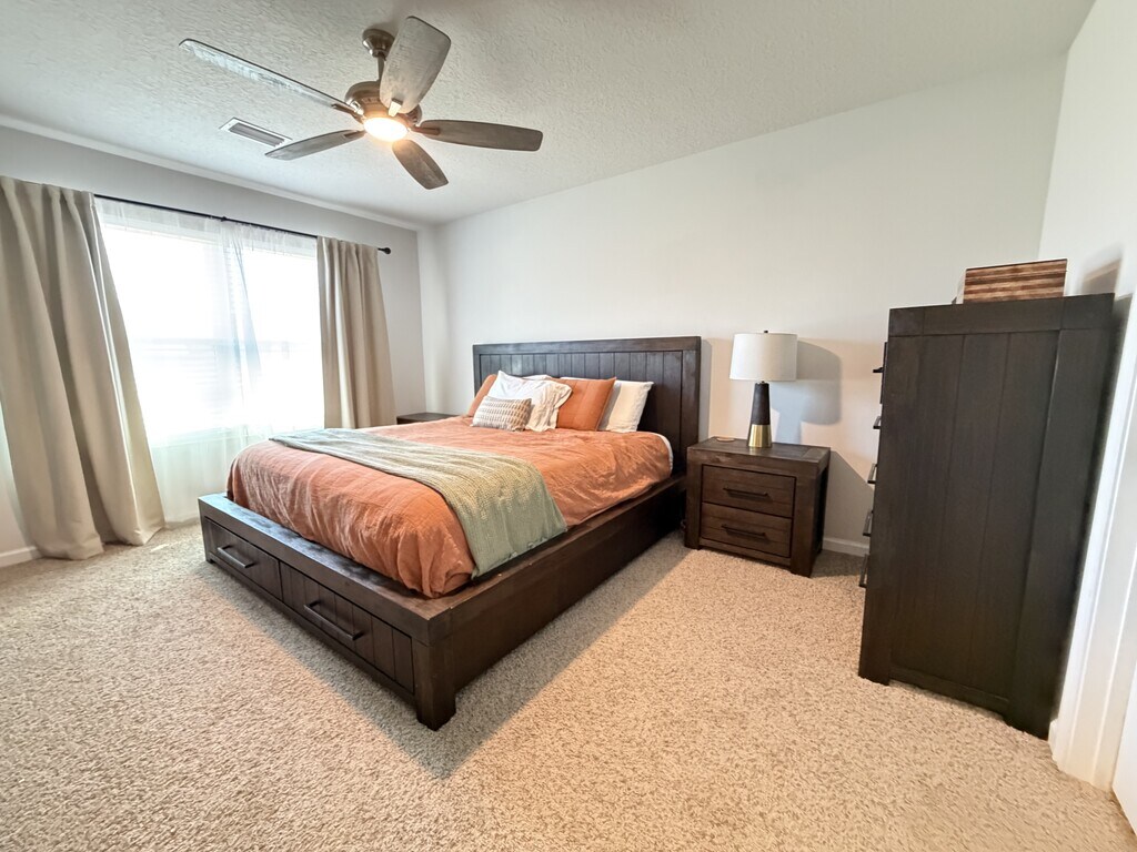 Welcome to 4656 Honor Guard Way — a beautifully maintained, move-in ready ranch-style home offering comfortable, elevated living all on one level, ideally situated on a quiet cul-de-sac. This home features an open-concept layout filled with natural light, creating a bright and inviting atmosphere throughout. The well-appointed kitchen offers ample counter space and a functional flow that seamlessly connects to the main living and dining areas—perfect for both everyday living and entertaining. Ceiling fans in the living room, primary suite, and back porch area add comfort and efficiency year-round. The spacious primary suite provides a private retreat, complete with a modern bathroom featuring a sleek shower with sliding glass doors. Additional bedrooms offer flexibility for guests, family, or a home office setup. Step outside to a fully fenced backyard and enjoy the custom paver patio extension, a standout feature that enhances the home's outdoor living space—ideal for grilling, entertaining, or creating your own fire pit retreat. A two-car garage adds convenience and additional storage. Residents also enjoy access to a community pool and grilling area, along with sidewalks throughout the neighborhood—perfect for walks and an active lifestyle. Pets considered on a case-by-case basis. Good credit preferred. 1.5-month security deposit required. Available July 1.