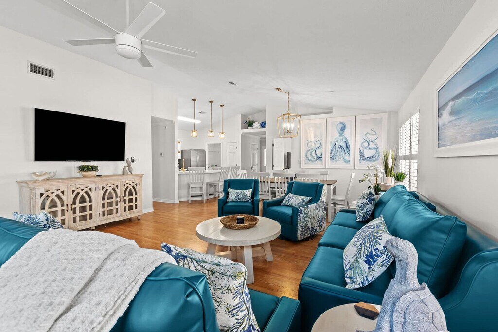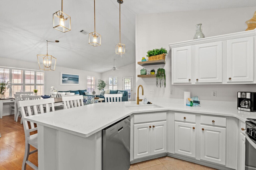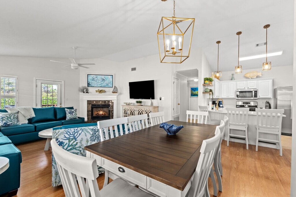 Feel at home in this Destin home, located in the heart of Destin, within a few short blocks to the most beautiful sugar sand beaches. Located in the cozy Sunsail neighborhood, this home offers a modern coastal cozy vibe. This home features an open-air feel with natural light encompassing the entry way and living room area. The kitchen is stocked with full appliances, dishes, bake ware, pots and pans, silverware, utensils, crockpot, blender, a traditional coffee maker and Keurig. A high chair, pack and play, kids cutlery, cups, and plastic dishes are available for tiny travelers. The garage doubles as a bonus game room with a custom built ping pong table and an indoor basketball game. Enjoy a cozy outdoor patio with a fire pit. Marriott mattresses are provided. A four-passenger golf cart is available for bookings occurring from October 1-March 1 for insured and licensed drivers over 25. This home is pet friendly with a fee of $200 for up to 2 dogs per booking. Located in the cozy Sunsail neighborhood, this home is super close to the Destin Commons with plenty of shopping, entertainment, and restaurants. The Silver Sands Outlets are within a few minutes drive East with more shopping, restaurants, and a play area for kids. There are plenty of public beach accesses close by within walking/golf cart distance. The town is fairly easy to navigate, as most everything to do is directly off the main road through in either direction! The community pool is open seasonally from April 1 to October 26. Golf cart use is not permitted for use by guests under age 25. Only house trained pets are permitted, and if planned to leave unattended they must be crated to avoid damage. It is required to clean up after your pet, both inside and out, or additional fees will be assessed. ESA (Emotional Support Animals) are subject to the pet fee, as they do not fall under ADA compliant service animal requirements. A desk is available in the dining area and in the master bedroom for those who need access to work from home. [SI]