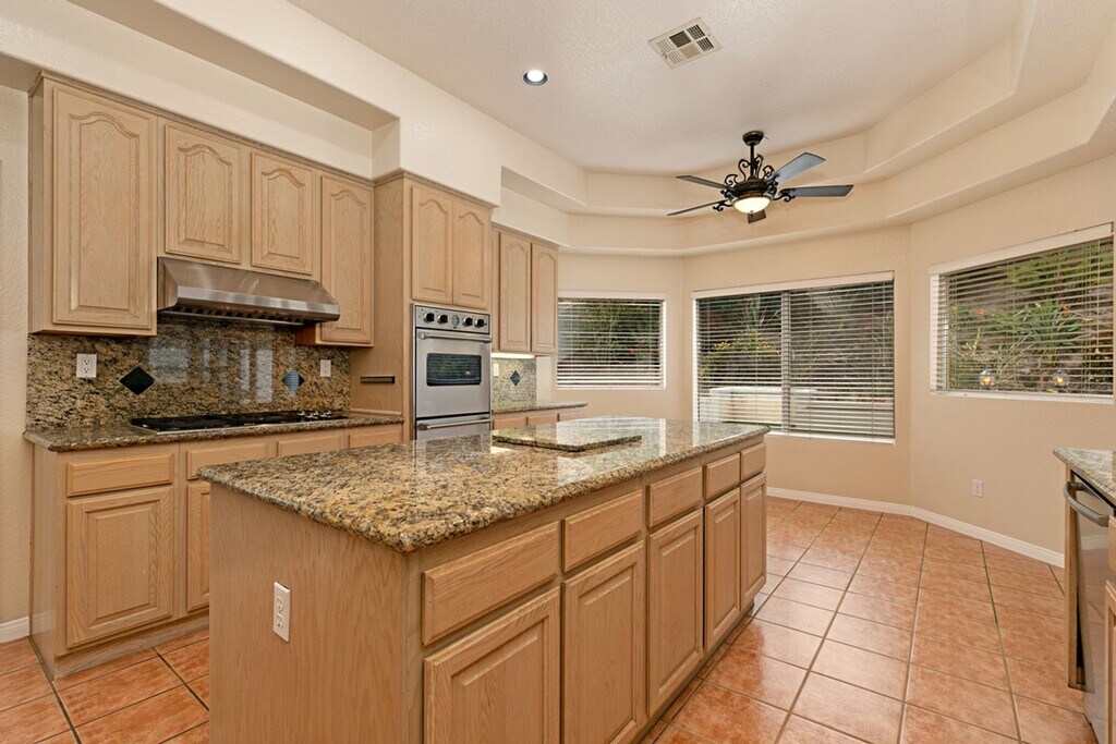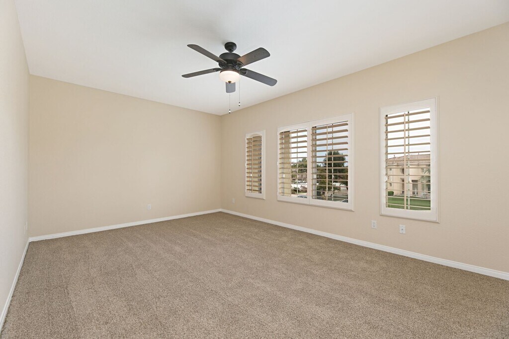 Welcome home to this beautiful 5 bedroom, 3 Bathroom home in the Missions in highly sought after Rancho Del Oro. Live on a quiet cul-de-sac with a spacious low maintenance yard. The sprawling layout welcomes you with light and bright cathedral ceilings in the living room including beautiful plantation shutters. A large chefs kitchen overlooks the family room. There is a full bed and full bath on the first floor along with a full laundry room and three car garage. Upstairs boasts a beautifully updated primary retreat with plantation shutters, wood floors and peaceful spa-like bath with a free standing soaking tub and enormous closet. Three additional rooms share one more full bathroom upstairs. Enjoy A/C anytime with included solar system. Minimum 1 year lease is required & renters insurance required. Owner pays HOA. * by providing your phone number in inquires you agree to communicate via text message. ** all unit sizes are estimated.