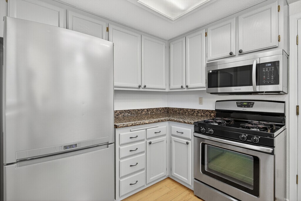 Welcome to 466 Mountain Laurel Court, a gorgeous 2 bedroom, 2.5 bathroom townhouse with 1,225 sq. ft. of living space, located in a quiet neighborhood within walking distance to Downtown Mountain View. Interior Features: - Spacious formal entryway opening to a bright living room filled with natural light. - Separate living and dining rooms, perfect for relaxing or entertaining. - Durable hard floors throughout and a cozy fireplace that adds warmth and charm. - Open kitchen with ample cabinetry, granite countertops, and double sink. - Equipped with stainless steel appliances: refrigerator/freezer, dishwasher, new built-in microwave, gas cooktop, and oven. - Two master bedroom suites, each with a private bathroom, generous closet space, and a private balcony. - Large master suite with vaulted ceilings, skylight, soaking tub, dual vanity, and full wall mirror. - Washer & dryer located in the attached one-car garage. Outdoor & Parking: - Two private enclosed patios, one in the front and one in the back, ideal for relaxing or entertaining. - Attached one car garage with wall-mounted storage shelves. - Additional parking: one private carport space plus guest parking. Community Amenities: - Enjoy access to the swimming pool and spa, perfect for unwinding after a long day. Prime Location: - Less than one mile from Castro Street with easy access to restaurants, boutique shops, the public library, and the lively Farmers' Market. - Close to Caltrain, VTA Light Rail, and major highways 101, 85, 237, and Central Expressway. - Excellent commute to Google, Apple, Meta, and other top Silicon Valley employers. - Convenient shopping nearby: Bailey Park Shopping Center (Safeway and restaurants), Costco, Target, Whole Foods, Trader Joe's, Walmart, and San Antonio Shopping Center. Don't miss your chance to make 466 Mountain Laurel Court your new home! - No pets - No AC, only central heating - Tenant responsible for PG&E & Water - Landlord responsible for HOA fees Welcome to 466 Mountain Laurel Court, a gorgeous 2 bedroom, 2.5 bathroom townhouse with 1,225 sq. ft. of living space, located in a quiet neighborhood within walking distance to Downtown Mountain View. Interior Features: - Spacious formal entryway opening to a bright living room filled with natural light. - Separate living and dining rooms, perfect for relaxing or entertaining. - Durable hard floors throughout and a cozy fireplace that adds warmth and charm. - Open kitchen with ample cabinetry, granite countertops, and double sink. - Equipped with stainless steel appliances: refrigerator/freezer, dishwasher, new built-in microwave, gas cooktop, and oven. - Two master bedroom suites, each with a private bathroom, generous closet space, and a private balcony. - Large master suite with vaulted ceilings, skylight, soaking tub, dual vanity, and full wall mirror. - Washer & dryer located in the attached one-car garage. Outdoor & Parking: - Two private enclosed patios, one in the front and one in the back, ideal for relaxing or entertaining. - Attached one car garage with wall-mounted storage shelves. - Additional parking: one private carport space plus guest parking. Community Amenities: - Enjoy access to the swimming pool and spa, perfect for unwinding after a long day. Prime Location: - Less than one mile from Castro Street with easy access to restaurants, boutique shops, the public library, and the lively Farmers' Market. - Close to Caltrain, VTA Light Rail, and major highways 101, 85, 237, and Central Expressway. - Excellent commute to Google, Apple, Meta, and other top Silicon Valley employers. - Convenient shopping nearby: Bailey Park Shopping Center (Safeway and restaurants), Costco, Target, Whole Foods, Trader Joe's, Walmart, and San Antonio Shopping Center. Don't miss your chance to make 466 Mountain Laurel Court your new home!