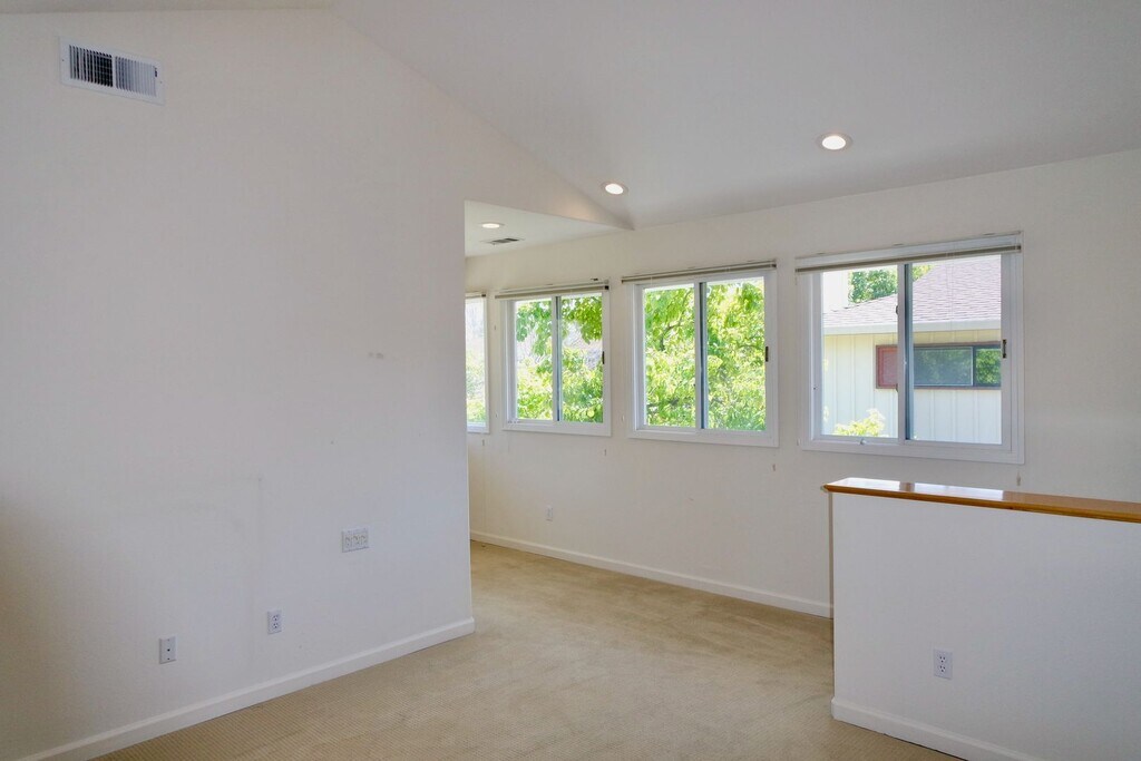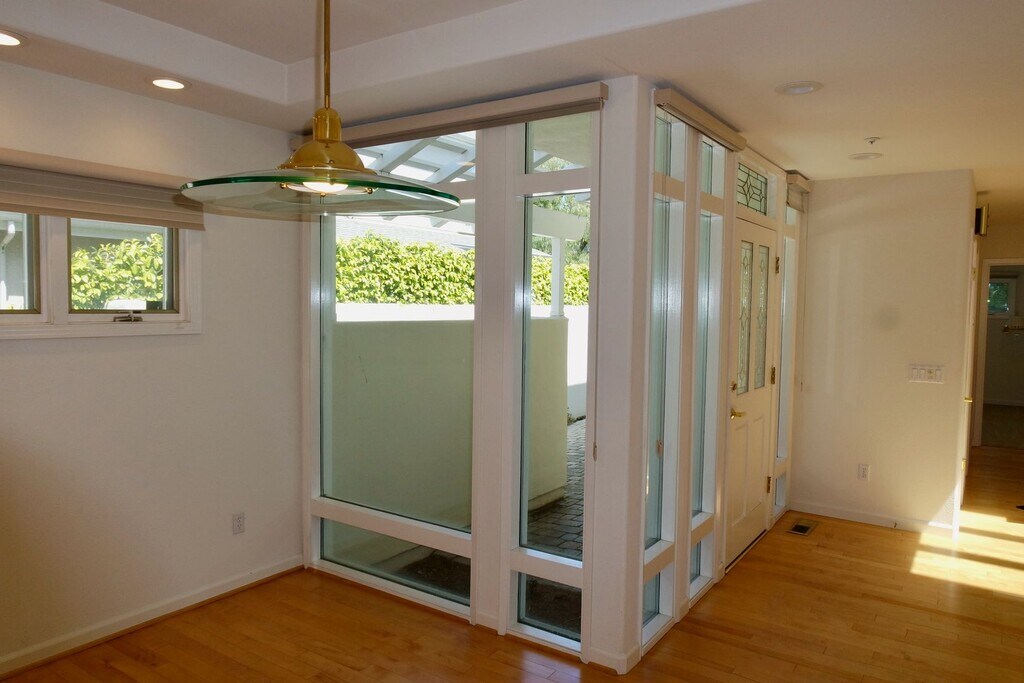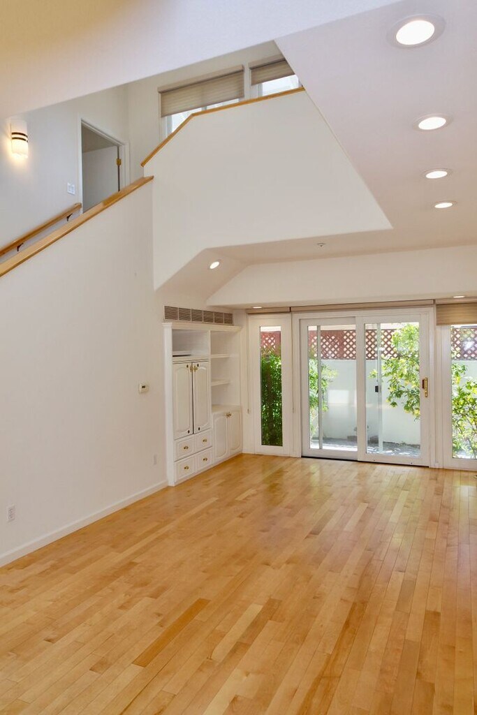 Just one block from Downtown Los Altos, this light, bright, and spacious custom townhome must be seen to be fully appreciated. Though technically a condo, with just one adjoining unit it has much of the look and feel of a single family home. Totaling over 2000 square feet with a high ceiling, skylights, and plenty of window space it achieves a clever balance of natural light but privacy, and airiness but coziness. The huge master suite features an office nook, a bedroom-sized closet with built-in organizer and cabinets, and large bathroom with walk-in shower and dual sinks. Upstairs are a second full bathroom with shower over tub; bedroom with built-in desk, cabinetry, and closet organizer; and laundry room with utility sink, counter, ample cabinet space, and washer and dryer provided. The ground floor features a third bedroom and full bathroom with walk-in shower; semi-open concept living room with hardwood floor and built-in entertainment center; separate dining room; kitchen featuring sleek solid-surface countertops, five-burner gas stove, built-in desk space, and breakfast nook. A one-car garage with plenty of storage space includes an electric vehicle outlet. Paving-stone driveway can park a second or even a third car. Small, serene, private patio features a lemon tree and lavender bush. Among the many additional features are dual-zone central heat and air conditioning, intelligent lighting design, two-way shades in the master suite, and dual pane windows throughout the home. Just one block from the intersection of First and San Antonio, the home is just minutes (with or without vehicle) from Downtown Los Altos and its many restaurants, shops, two full grocery stores, hardware store, offices and more. Also within close proximity of the Los Altos Library, Los Altos History Museum, Shoup Park, and Redwood Grove Nature Preserve. Come and see how good life can be on Tyndall Street! 1-year lease renter's insurance required sorry, no smoking pets negotiable tenant pays utilities shown by appointment - please do not disturb current occupant Professionally managed by 408 Rental Management (DRE #02049881)