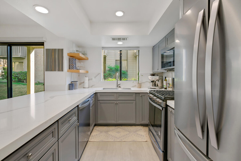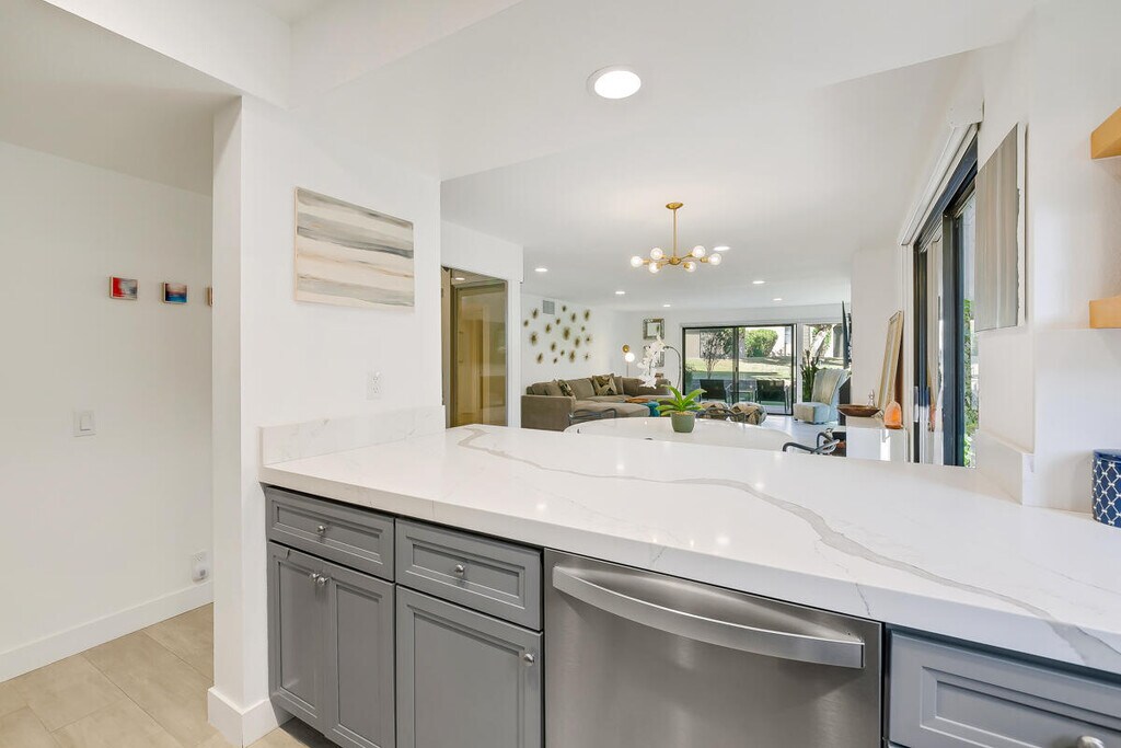 This turnkey Mountain Cove condominium offers breathtaking mountain views and is available to lease immediately. Recently remodeled,the lower level unit is move-in ready,providing a luxurious and comfortable living space. The kitchen features grey cabinetry,stainless steel appliances,stunning quartz counters and and backsplash. These elegant finishes create a modern and sophisticated space,perfect for entertaining guests. The primary bedroom includes a spacious walk-in closet. The primary bath has been tastefully remodeled with a walk-in shower and double sink vanity. The home is in fantastic condition. The light and bright tones create a peaceful and complementary ambiance. The nearby pool is quiet and easily accessible,with plenty of parking for visitors. The patios offer stunning mountain views,while the surrounding glass brings in ample light and integrates the outdoors with the interior space. With plenty of cabinets and closets for storage,this condo is a must-see for anyone seeking a beautiful,spacious,and unique home. Overall,this property is the perfect choice for those looking for high-end living in the desert.