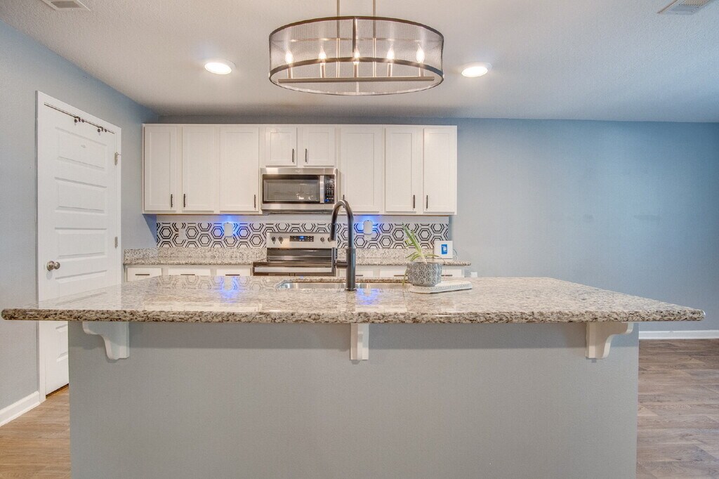 This stunning 4-bedroom, 2-bath rental home offers a true backyard oasis with a heated saltwater gunite pool, fountains, an outdoor kitchen cabana with bar seating, and tropical palm trees for the perfect Florida vibe. Inside, the foyer opens to a split floor plan with guest bedrooms and a bath on one side and the spacious primary suite on the other. The open living area flows seamlessly into the kitchen, complete with granite counters, shaker cabinets, stainless steel appliances, and premium light fixtures—ideal for everyday living and entertaining. Elegant LVP flooring runs throughout with fresh neutral tones and modern accents. Outside, enjoy the lush irrigated zoysia lawn on a half-acre lot with room for outdoor activities and a fire pit area for relaxing evenings. Pets are welcome upon owner approval with a $250 non-refundable pet fee per pet (no aggressive breeds). Owners are offering a 7-month or 12-month lease. Residents are required to carry renter liability insurance, which can be added for $11.95/month, or may opt into the Resident Benefits Package (RBP) for $45/month, which includes renter liability insurance, HVAC air filter delivery, and on-demand pest control.