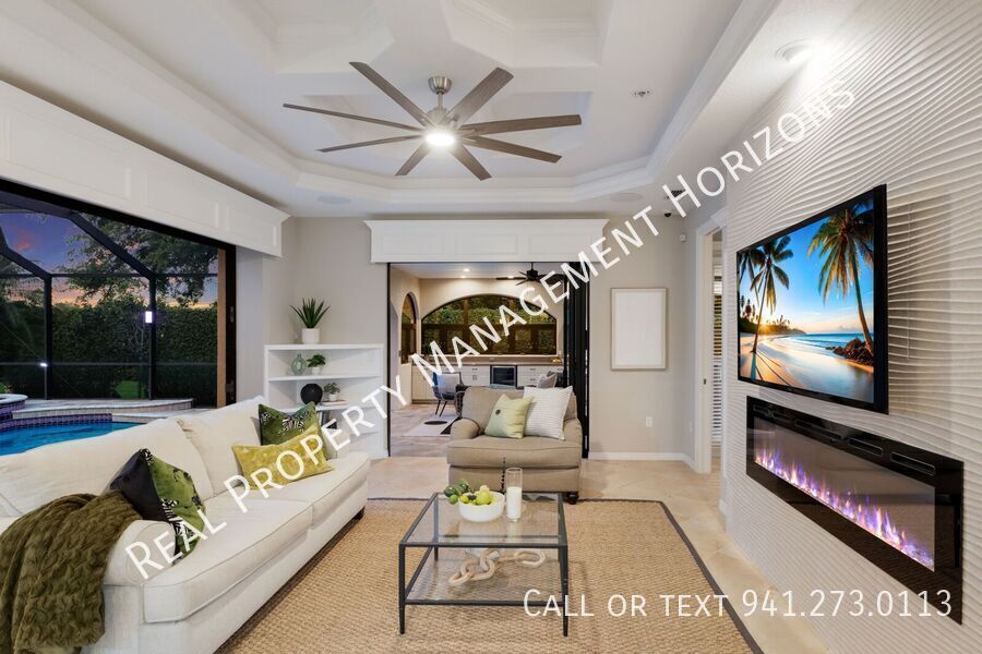 Real Property Management Horizons are thrilled to welcome you to a grand showcase of sophisticated living in Tuscana, a highly sought-after community in Sarasota, revered for its A-rated schools and prime location. A masterpiece by acclaimed builder Lee Wetherington Homes, this fully furnished, custom residence is elevated by an immaculately manicured landscape, private walls, and a distinctive design. Graced with 4 generously sized bedrooms and 3.5 bathrooms, plus a bonus room, the interiors are a blend of neutral tones, ample natural light, and refined finishes, such as a 10-inch crown molding, stone surfaces, and intricate custom millwork. The property boasts cutting-edge tech spectacles, such as intelligent lighting systems, advanced CAT 5 & 6 wiring, automated shades, indoor and outdoor speakers, and thermal sensing camera systems. The elegant family room features a sleek linear fireplace. An inviting natural gas kitchen, complete with glass-front cabinetry, inset lighting, and high-end stainless appliances, serves as a culinary sanctuary. Wine aficionados will be intrigued by the temperature-controlled wine cellar capable of accommodating over 900 bottles. The home seamlessly opens to a backyard paradise, a true extension of the living space, framed by impressive NanaWall style folding glass doors. Enjoy a travertine pool deck, a gas heated saltwater pool, and a spa, crowned by a spectacular 500 sq ft cabana. Equipped with fully-fledged summer kitchen and spacious dining and lounge areas, the outdoor deck is ideal for entertaining or savoring quiet, personal moments. For a worry-free living, the house comes with a powerful 48kw whole house Generac generator. This luxurious abode effortlessly merges style, technology, and comfort for an unmatched living experience. An internal inspection of this - simply stunning - residence is highly recommended in order to fully appreciate the accommodation on offer. The property is offered furnished or part furnished. Water, Trash & Sewer, Lawn Care & Exterior Pest Control Included in the rent HOA Application Fees may apply. Available Immediately for variable Lease Terms. Tourist Taxes at 13% apply on all rentals less than six months and one day. Tenants will be liable for a Set-Up Fee of $200.00 in addition to the Application Fees 500sq Ft Cabana Climate Controlled W Ine Cellar Established Shrubs & Landscaping Offering Privacy Within The Expansive Lanai Fully Equipped Outdoor Kitchen Spanning 30ft Fully Furnished Gas Heated Salt Water Pool & Spa Generator Maintenance Open Plan Living Incorporating Kitchen Dining Breakfast Bar & Living Room Pest Control (Exterior & Interior) Pool Care Prestigious Gated Neighbourhood Separate Dining Area And Breakfast Dining Area State Of The Art Lighting Audio Video Climate Throughout The Property State Of The Art System Controlling Light Audio Video And Climate Throughout The Property Triple Garage With Driveway Parking For Multiple Vehicles Yard & Lawn Care