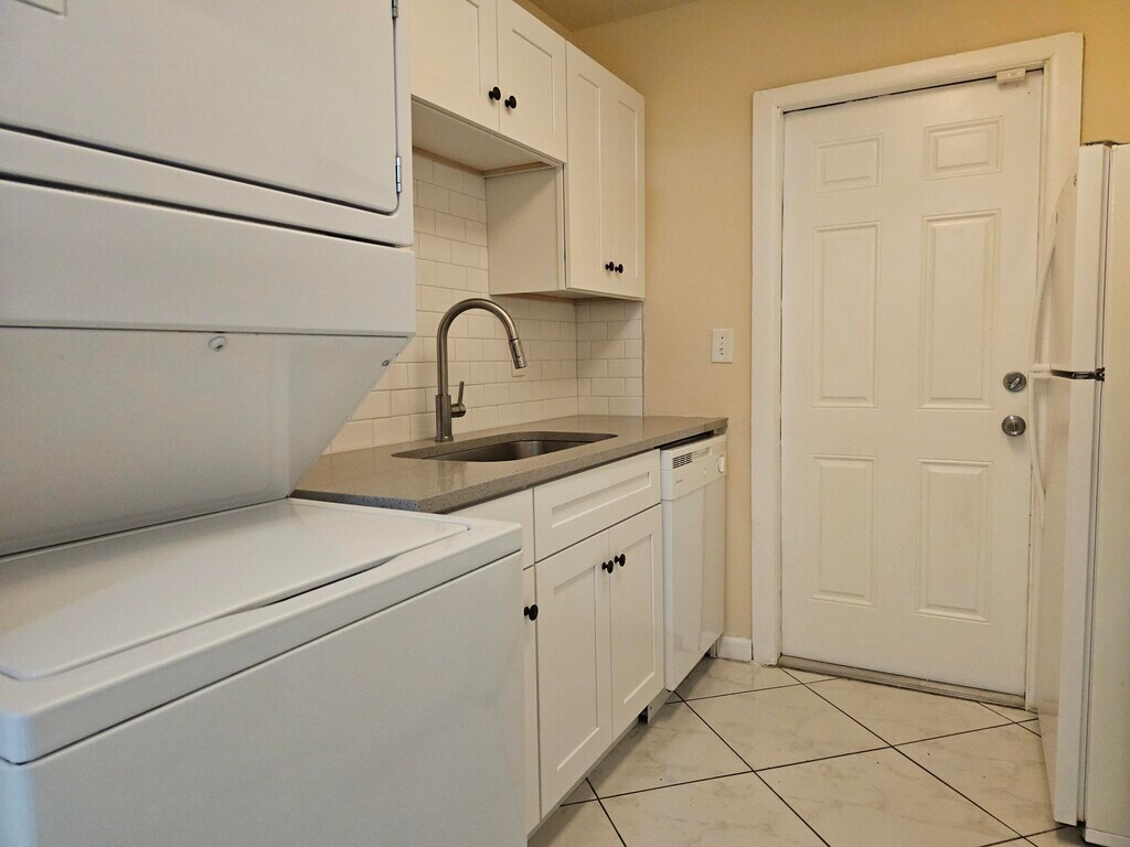 2br/1bath apartment new kitchen and bathroom includes stackable washer and dryer, dishwasher, electric range and refrigerator, and microwave. Fenced back yard, great quiet complex with lots of character. 1st 12th and Security Deposit to move in. Verifiable references and income, great for immediate move in