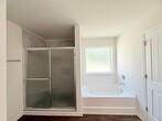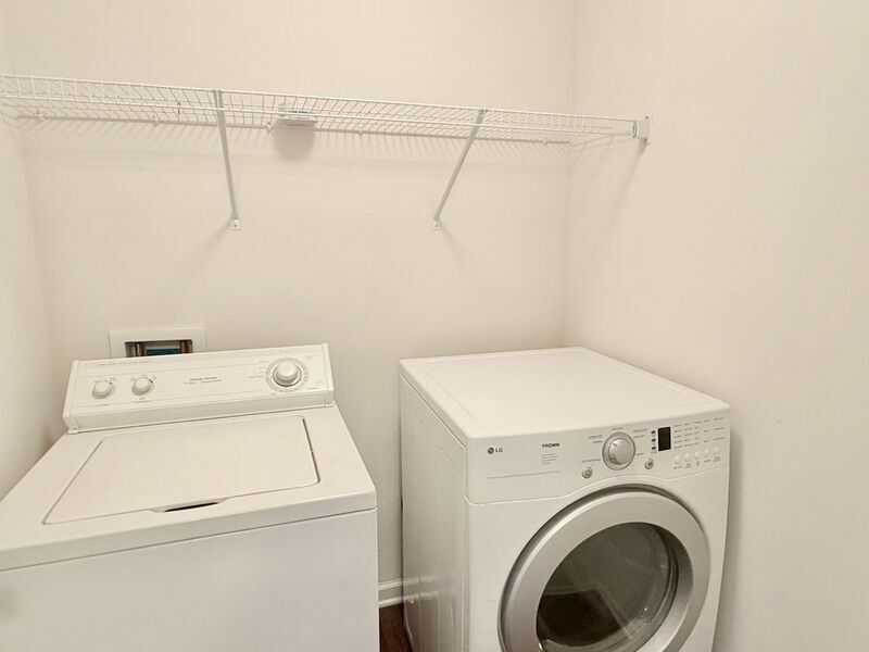 View In 3D: This spacious 4-bedroom, 2.5-bath home offers 1,884 sq. ft. of comfortable living space with a bright open-concept design. Downstairs features durable LVP flooring throughout and a modern kitchen with a large island, dual basin sink, ample counter space, a side-by-side refrigerator, flat-top range/oven, built-in microwave, and dishwasher. French doors open from the kitchen area to a fully fenced backyard, perfect for entertaining or relaxing outdoors. Upstairs, the primary suite includes a luxurious ensuite bath with dual vanities, a garden tub, separate shower, and a private water closet. Three additional bedrooms share a spacious full bathroom with dual vanities and a tub/shower combo. Additional highlights include a half bath on the main floor, dedicated laundry room with full-size washer and dryer provided, and a two-car garage.