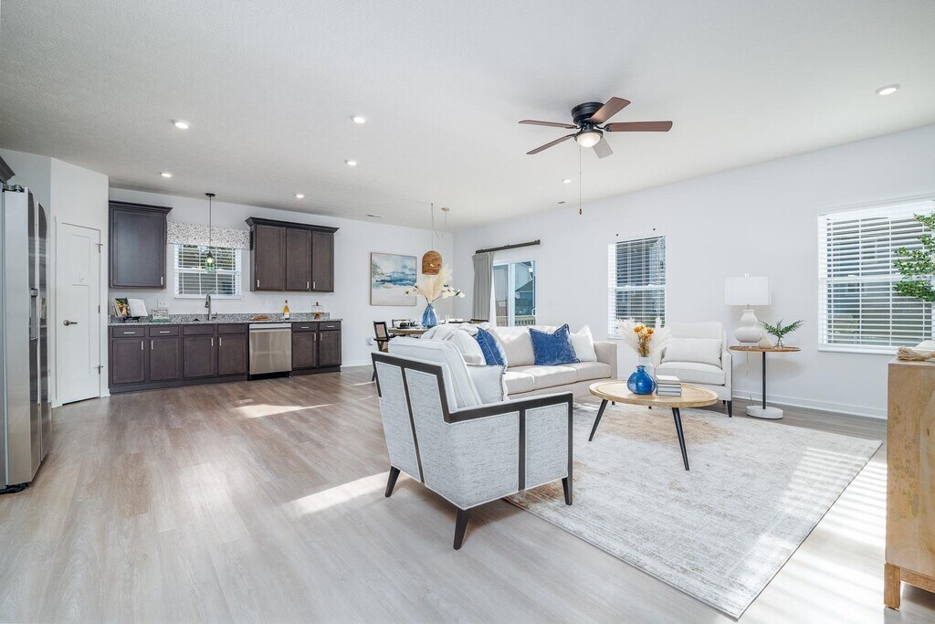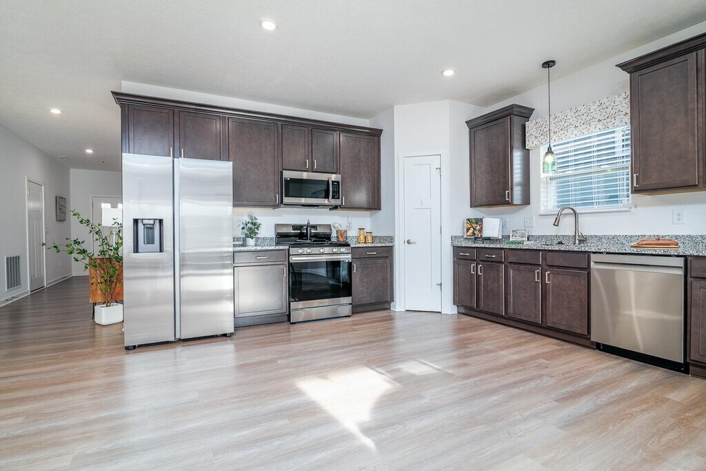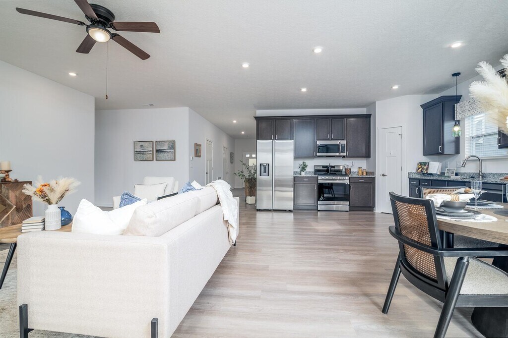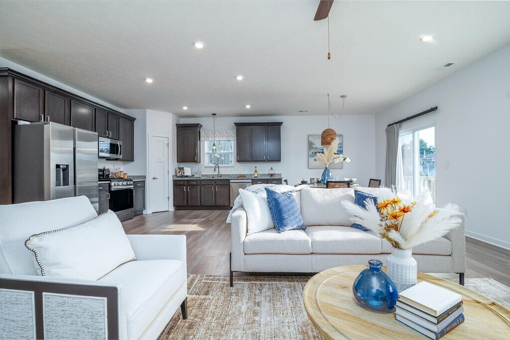 Welcome to this nearly new ranch home in one of Delaware's most desirable communities. Offering 1,740 sq ft of single-level living, this home features an open floor plan, abundant natural light, and neutral finishes throughout. The kitchen includes stainless steel appliances, ample cabinetry, and generous counter space, opening to the dining and living areas. The primary suite offers a walk-in closet and private bath, with two additional bedrooms and a full bath. Enjoy the shaded front porch and spacious deck overlooking the backyard. Community amenities include walking paths, playground, pond, and basketball court. A two-car garage and street parking add convenience. Renters pay all utilities (electric, gas, water). Small pets allowed with $350 non-refundable fee/pet and $35 pet fee/pet. $50 PER APPLICATION (anyone over 18+). NO CRIMINAL BACKGROUND OR EVICTION/BANKRUPTCY HISTORY.