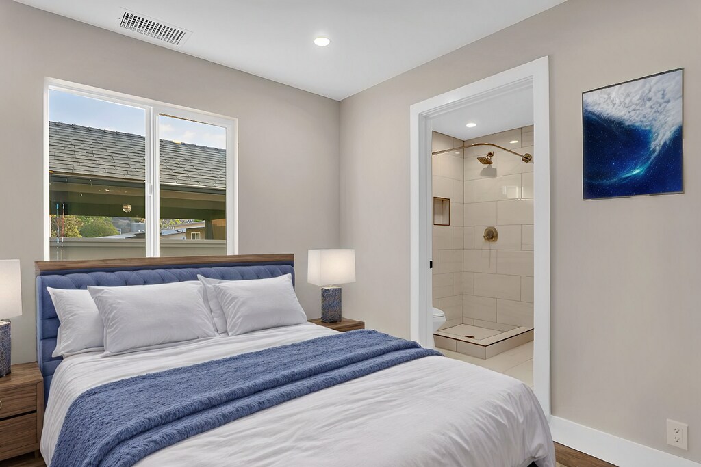 Brand-new construction and move-in ready! Experience elevated living in this beautifully designed home offering the perfect balance of luxury, efficiency, and style. Built recently with attention to detail, this property features three spacious bedrooms, each with its own private ensuite full bathroom, ensuring privacy and confort for all. Step into a bright, open-concept living area that blends seamlessly with a modern kitchen, complete with quartz waterfall countertops, sleek European cabinets, and energy-efficient stainless-steel appliances. The home also includes 8mm LVP flooring throughout house, porcelain tiles in every bathroom, LED lighting, water conserving plumbing fixtures, and solar panels for lower utility costs. Enjoy new concrete surfaces, a private balcony, and two parking spaces right in front. Conveniently located near the 8 and 15 Highways, you will have quick access to numerous convenience stores, restaurants, and some of San Diego's favorite neighborhoods. Pacific Beach, Mission Beach, Point Loma, Downtown, La Jolla, Mission Valley, and North Park are all also easily accessible. Pet Friendly, pet rent is $50 per pet per month. Pet security deposit is $500 per pet. Lease options are flexible from 6 months to 1 year