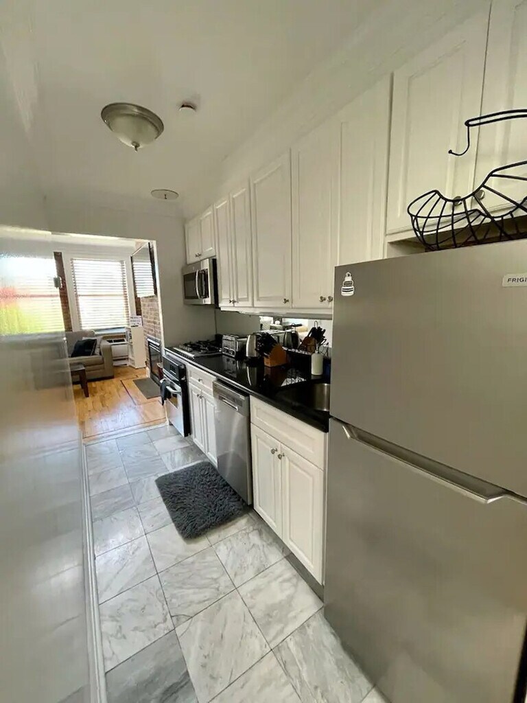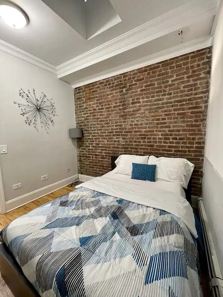 Feel at home in this charming Midtown West 3-bedroom apartment. This centrally located home is fully equipped with all the basics and necessities for your convenience. This incredible penthouse apartment features a private roof deck and a stacking Bosch washer/dryer in unit. The gorgeous renovation includes exposed brick, a fireplace, and lofty 18' ceilings in the living room. There are unobstructed views from the rooftop. The dining nook has no detail overlooked. The apartment also features a skylight in the back bedroom, a transom in the front bedroom, and a bathroom with a tub and shower doors. The pass-thru kitchen features granite counters, a Whirlpool self-cleaning oven, a GE refrigerator, a GE dishwasher, and a built-in microwave.