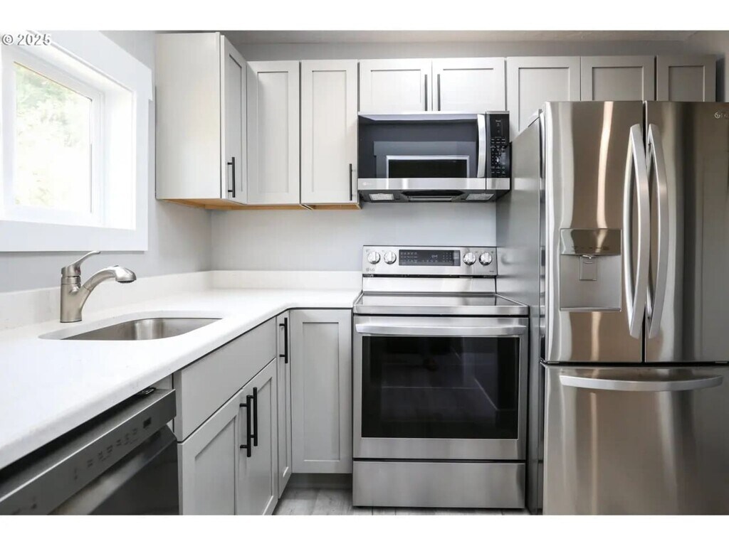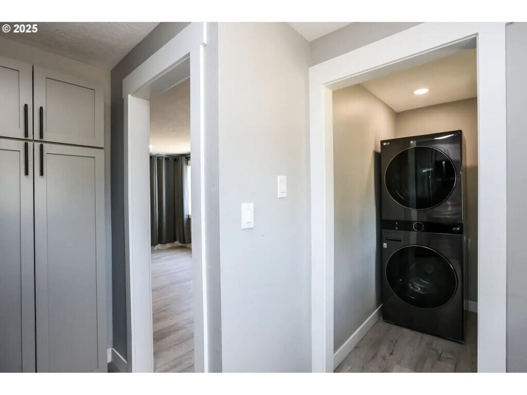 Charming Newly Renovated Home This beautifully updated 2-bedroom, 1-bath home sits on a corner lot and offers a fresh, modern feel throughout. Features include luxury vinyl plank flooring, quartz countertops, stainless steel appliances, and a convenient stackable washer/ is maximized with three ductless heating and cooling units, providing year-round efficiency and climate control.