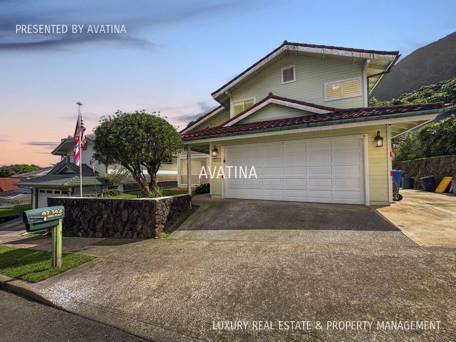 Welcome to this spacious and well-appointed 3-bedroom, 3-bath duplex home in desirable Ahuimanu. Enter into a generous living and dining area with soaring vaulted ceilings that open to a private lanai—perfect for indoor-outdoor living. The chef’s kitchen features granite countertops, hardwood cabinetry, stainless steel appliances, and a breakfast bar that overlooks a second dining or family room. The main level also includes a full bathroom, a dedicated laundry room with full-size washer and dryer, and an attached two-car garage and easy street parking. Upstairs, the expansive primary suite offers an ensuite bath, walk-in closet, and a versatile nook ideal for a home office, reading lounge, or flex space. Two bright, well-proportioned guest bedrooms feature ceiling fans, full-size closets, and share a full hallway bathroom. Additional highlights include split air conditioning, fresh paint, new luxury vinyl plank flooring downstairs, and brand-new carpet upstairs. Professional landscaping is included. Located in the lush Ahuimanu neighborhood with convenient access to shopping, dining, and outdoor recreation. No pets allowed. At the rear of the property is a separate 2-bedroom ohana unit rented by a quiet mature couple with its own private entrance and dedicated parking, offering mutual privacy. YouTube Tour: coming soon just listed 3D Tour: coming soon just listed Schedule a Showing Online at: Or call: (8O8) 645-449O - 47-143 Heno Place See more available rentals at: Lease Terms: 1-year lease. Rent: $4,000. /month plus $15.50/month Liability to Landlord Insurance & credit reporting fee. Security Deposit: $4,000. All rent and deposit due at signing. Liability to Landlord Insurance and Renters Insurance required. Fees: $50 application fee. $100 one-time onboarding fee with approved application. Included Services: Trash and landscaping. Tenant pays 75% of the Hawaiian Electric bill and 50% of Board of Water bill Pets: No pets allowed No smoking or vaping. Presented by Avatina – Luxury Real Estate & Property Management. Landscaping Service