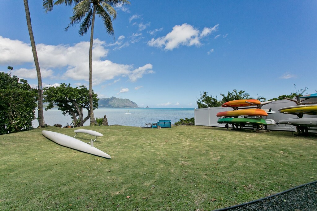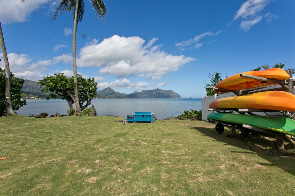 AVAILABLE NOW FOR RENT! Located near the famous Sandbar in Kaneohe. Experience serene living near the water with miles of breathtaking ocean views stretched across to Mokoli'i (aka Chinaman's hat) and the majestic Ko'olau mountain range as your backdrop. Enjoy outdoor living on your covered lanai or bask in the sun in the backyard overlooking the water. This beautiful studio is updated with very tasteful finishes including a functional kitchen space, induction cooktop, and a private restroom and shower. Rent includes utilities (water, electricity & internet). Cable TV is at the occupant's expense. Minimum 6 mos. rental term.