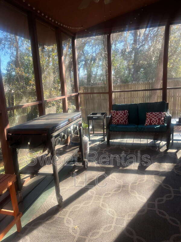Welcome to this beautifully furnished home located in a quiet, centrally positioned West Ashley neighborhood—perfect for 30+ day stays. Designed for comfort and functionality, this property is ideal for travel nurses, medical professionals, remote workers, and families relocating to Charleston. The home features a recently updated kitchen with stainless steel appliances, quartz countertops, quality cookware, and a large island with bar seating. The dining area seats 6–8 guests, and the living room offers a comfortable sectional and a 60-inch TV. The primary suite includes a king-size bed and a spa-style bathroom with double vanity, tiled shower, and jetted soaking tub. A second bedroom offers a queen-size bed and access to a private hall bath. Upstairs, the loft serves as a dedicated work-from-home and wellness space with a desk, treadmill, and exercise equipment. Outdoor amenities include a screened-in porch, private hot tub, and a fully fenced backyard—ideal for pet-friendly stays. Guests also enjoy access to community amenities, including a pool, tennis courts, and basketball court. Conveniently located 15 minutes from Downtown Charleston, 20 minutes from Folly Beach, and near MUSC and Roper St. Francis hospitals, major highways, the airport, and business centers. Minimum stay: 30 days Furnished: Yes Pets: Considered Utilities Wi-Fi: Included Pet Details: Dogs Only