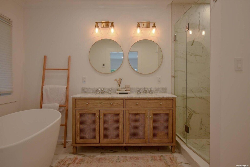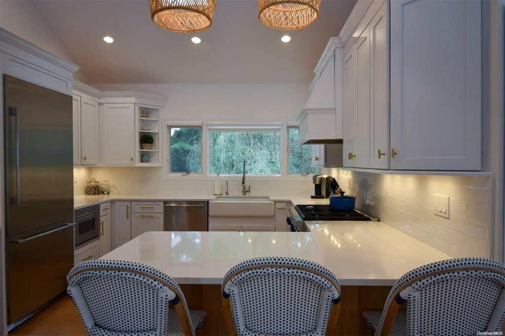 This spectacular Remsenburg retreat located on Bridle Path has just been beautifully renovated with all the bells and whistles. All on one level,this home features a gorgeous,comfortable living room overlooking the pool and lush backyard. The dining area,well equipped gourmet kitchen and living room are all on an open sun drenched floor plan. The primary bedroom,with its own luxurious bathroom and slider to the backyard,occupies one wing while the three guest bedrooms grace the south wing accommodated by two full bathrooms. The backyard includes a swimming pool surrounded by beautiful white tile,hot tub and a complete chef's kitchen with seating for eight. The private grassy yard and outdoor shower complete this lovely oasis. Just under 15 minutes to the great ocean beaches and Main Street,Westhampton Beach. Available August-Labor Day $45,000. Based on information submitted to the MLS GRID as of [see last changed date above]. All data is obtained from various sources and may not have been verified by broker or MLS GRID. Supplied Open House Information is subject to change without notice. All information should be independently reviewed and verified for accuracy. Properties may or may not be listed by the office/agent presenting the information. Some IDX listings have been excluded from this website. Prices displayed on all Sold listings are the Last Known Listing Price and may not be the actual selling price.