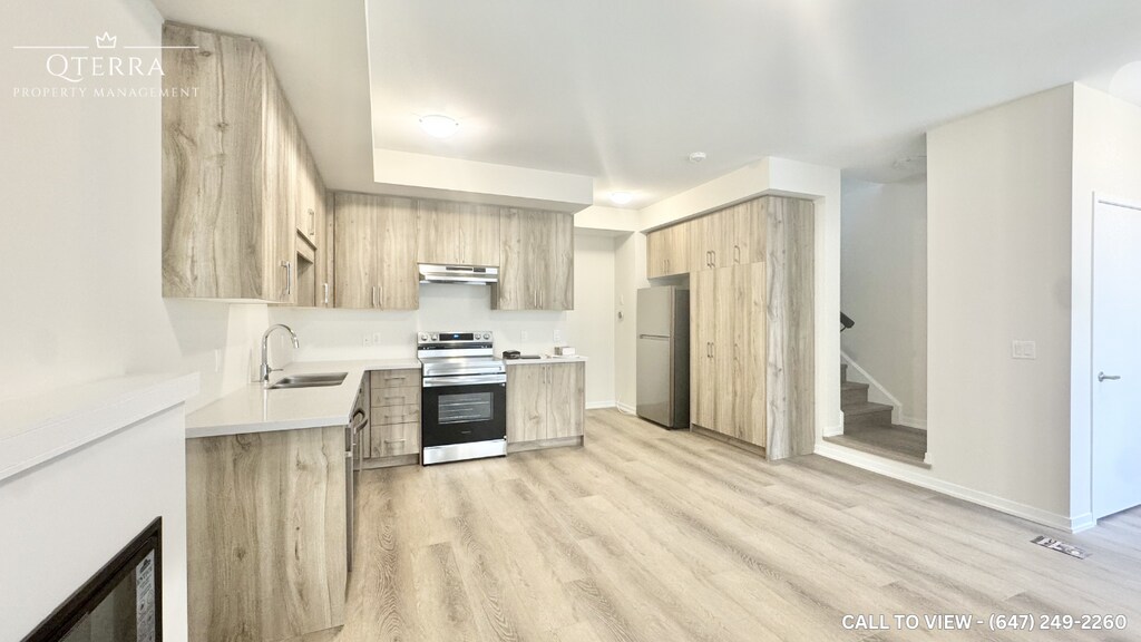 ELEGANT 3-BEDROOM MAIN LEVEL UNIT IN A VIBRANT NEIGHBORHOOD This property blends modern interiors and lifestyle-friendly features, ideal for families or professionals seeking both comfort and sophistication. Standout features include walk-in closet, private garage and corner balcony with city views. KEY PROPERTY DETAILS: - Type: Main Level - Bedrooms: 3 - Bathrooms: 2.5 - Size: 1500 SQF - Parking: 2 spots included - Availability: Immediately UNIT AMENITIES: - Property Condition: The unit is in good condition, offering reliable comfort and well-maintained finishes. - Internet Inclusion: Internet service is included, offering convenience and cost savings. - Upgraded Kitchen: A refreshed kitchen with stainless steel appliances and quartz counters, offering both style and functionality. - Dishwasher: Makes kitchen cleanup quick and convenient. - Laundry: Ensuite: In-suite laundry provides everyday convenience without shared facilities. - Personal Thermostat: Control heating and cooling to your exact comfort level year-round. - Closets: Spacious walk-in closet in the primary bedroom offers ample storage and organization. - Laminate Flooring: Smooth laminate flooring provides durability and a cohesive aesthetic. - Unfurnished: A blank canvas that allows you to personalize the space to your taste and lifestyle. - 10-Foot Ceilings: Higher ceilings create a spacious, airy atmosphere throughout the living space. - Upgraded Bathrooms: The primary bedroom includes a private en-suite bathroom for added convenience. - Open Concept: A seamless living, dining, and kitchen layout that maximizes flow and natural light. - Tons of Natural Light: Large windows brighten the home throughout the day, creating a warm and inviting atmosphere. BUILDING AMENITIES: - Corner Private Balcony: A dedicated outdoor space with corner positioning, offering enhanced views and privacy. - Private Garage: Secure, dedicated garage space adds convenience and peace of mind. - Full Driveway: A full driveway offers easy access and additional parking capacity for residents and guests. - View: City: Expansive windows showcase vibrant cityscapes, adding energy and atmosphere. NEIGHBORHOOD: Cleveland Common in Cambridge is a peaceful residential street set within a newer, family-friendly community. The neighborhood offers easy access to schools, parks, and local shops, while being just minutes from the conveniences of Cambridge Centre Mall and the scenic trails along the Grand River. With nearby transit routes and quick connections to Highway 401, residents enjoy seamless commuting across Waterloo Region and into the GTA. It’s a welcoming pocket that blends suburban comfort with everyday practicality. To book a showing, please contact us and make this your next home!