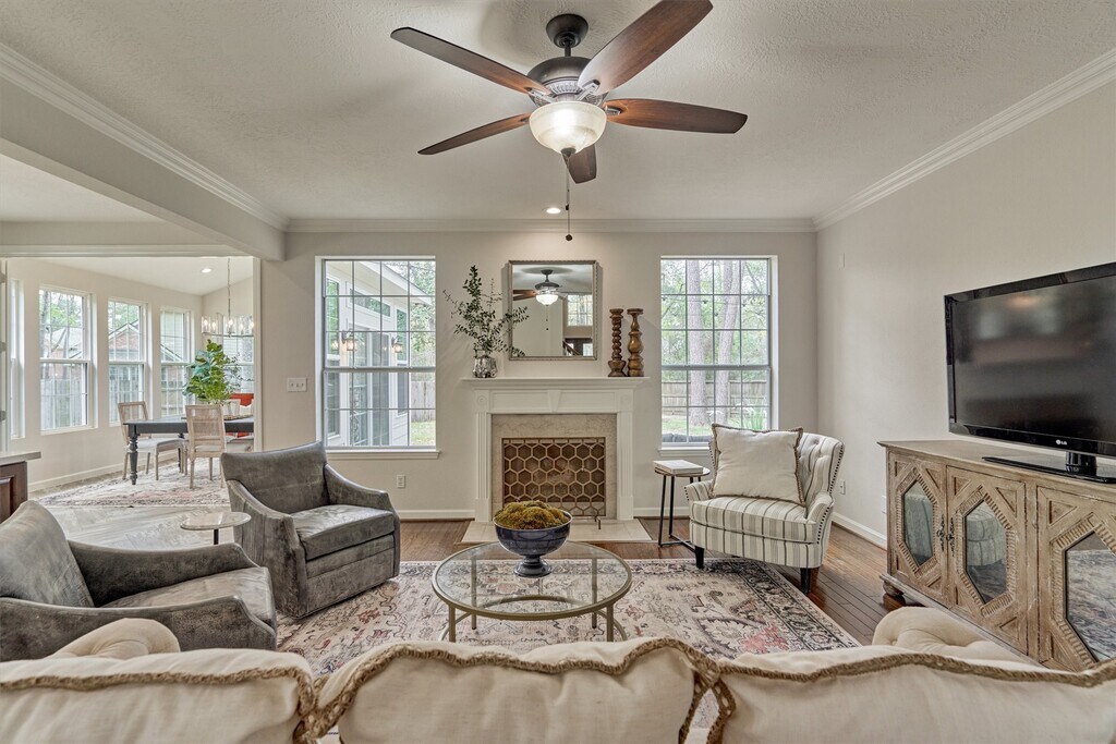 You will fall in love with this quiet cul de sac street nestled in the heart of the Woodlands! Beautiful hardwood floors,warm and inviting living room,and primary bed and bath with huge walk-in closet. Private office/study with custom millwork. A true gathering kitchen with Kent Moore custom cabinetry,Bosch dishwasher,KitchenAid appliances,apron sink,new refrigerator,quartz counters,and herringbone floors. If you like to entertain your beautiful breakfast/dining has walls of windows showcasing the huge private yard with no back neighbors! Large laundry with mud room,washer/dryer,desk area and plenty of storage! 3 bedrooms upstairs with bath and large game room! Minutes to the best restaurants,shopping,and parks the Woodlands has to offer! MLS# 62857461