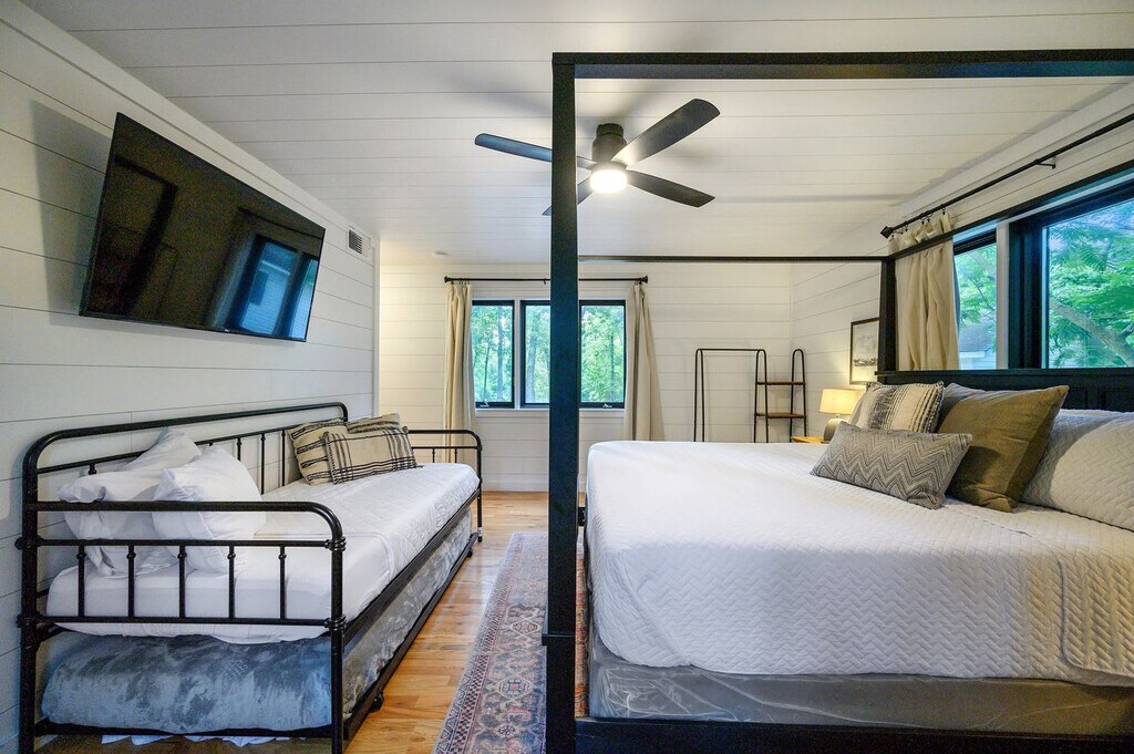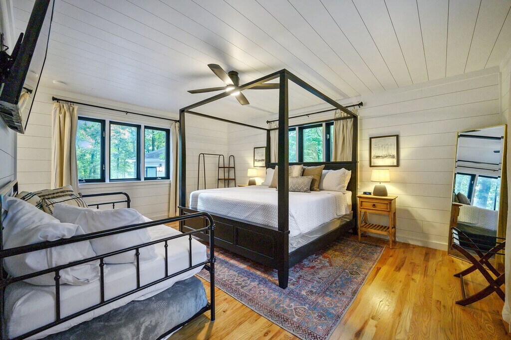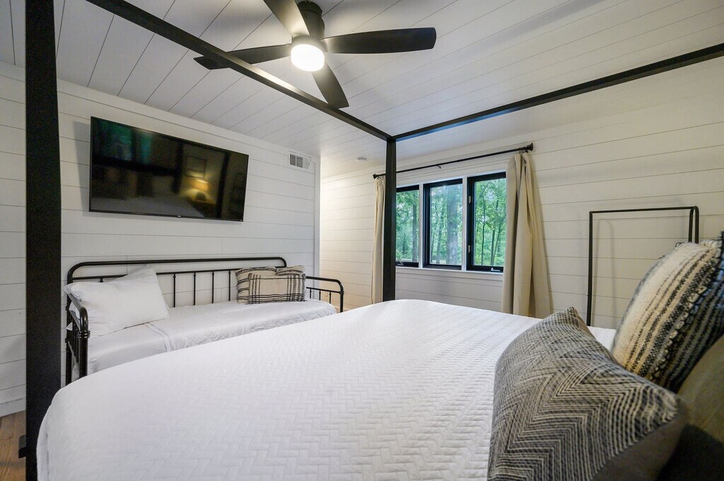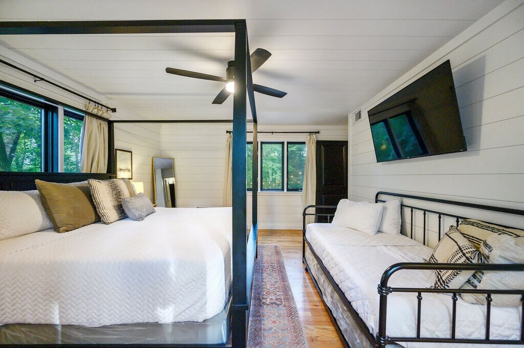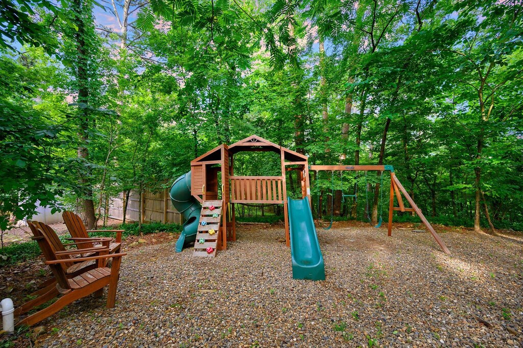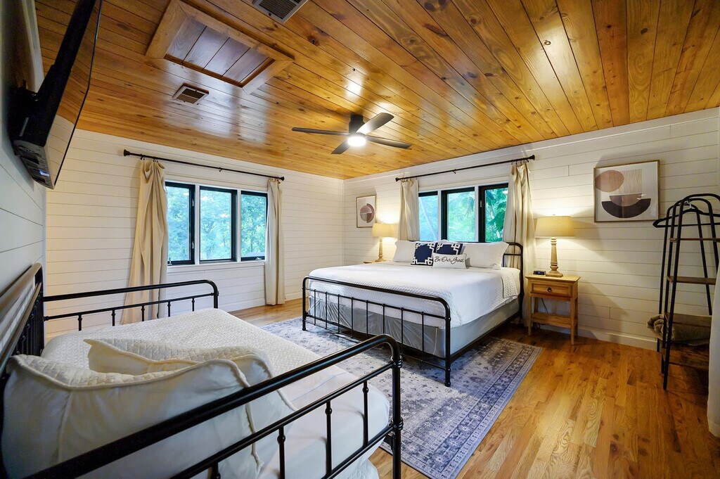 The advertised rate of $6,896/month is the lowest available price, based on a 1 month(s) stay with a move-in date of April 8, 2026. Rates vary depending on the duration of stay, season, and other parameters. For exact pricing and additional pricing components, please visit our website and enter your desired move-in and move-out dates. The rate is applicable when billed upfront; it can be higher if billed in multiple payments. Feel at home in the Creek Vista Farmhouse, a 3-bedroom home with a separate bunk house nestled in the scenic woods of Broken Bow. This spacious home comfortably accommodates up to 18 guests. Designed with connection and comfort in mind, this home features multiple entertainment zones. The fully stocked chef’s kitchen boasts high-end stainless appliances, ample cabinetry, and a large island with high seating. Enjoy the living room with a smart TV, large plush sofa, expansive windows, and an indoor fireplace. For outdoor fun, there's a kid’s playground, hot tub, fire pit, outdoor patio/dining area, and a BBQ grill. Up to 2 dogs are allowed for a fee of $125 per stay. Located just a short walk from the new Choctaw Landing Casino and minutes from Broken Bow Lake, Beavers Bend State Park, and Hochatown, you’ll have easy access to top attractions, dining, and outdoor adventures while still enjoying the privacy of a secluded retreat. Nearby attractions include Broken Bow Lake (5.9 miles), Beavers Bend State Park (6.1 miles), popular hiking trails, Lower Mountain Fork River (32 miles), downtown Hochatown (1 mile), and Choctaw Landing Casino (0.5 miles). Restaurants in the area include Abendigo’s Grill & Patio, Mountain Fork Brewery, Grateful Head Pizza Oven & Tap Room, Hochatown Saloon, and Pressa Italia. No parties are allowed—violations may result in immediate termination of the stay. An exterior camera is installed solely to monitor the cleaning team for quality and security purposes. Parking is available for 10 vehicles in the driveway; street parking is not allowed. Generous on-site parking accommodates boats, ATVs, and RVs with ease. Check-in is at 4pm and check-out is at 10am. Guests must be 21 years or older to book this property. [SI]