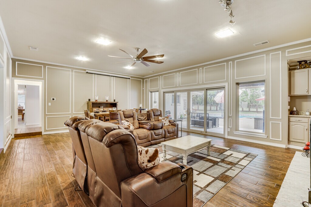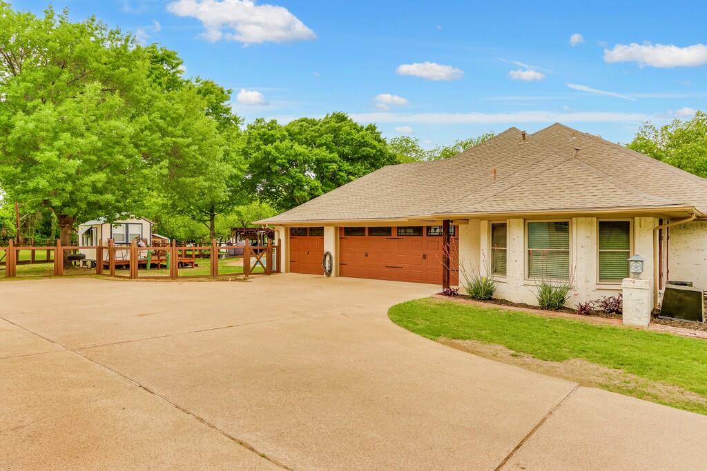 This 4 bed, 3 bath home sits on nearly 3 acres of scenic beauty. Enjoy breathtaking Lake Ray Hubbard views from the comfort of your own backyard oasis. Dive into the pool, relax in hot tub or sip on drinks under the pergola with a built-in bar, or unwind in the luxurious primary bedroom with a spa-like ensuite. The living area offers a cozy ambiance 65 inch TV. With ample green space for play, this home offers country living in the city. Don't miss out on this exquisite property! The space Welcome to our spacious 4-bedroom, 3-bathroom home in Rowlett! Situated on close to 3 acres of land, this property offers a tranquil retreat with stunning Lake Ray Hubbard views. The house features a long private driveway, two 3-car garages, and plenty of room to roam. Step outside into your very own backyard oasis, complete with a heated pool, outdoor shower, covered patio, and a beautiful pergola with a built-in bar, perfect for entertaining guests. Inside, you'll find a primary bedroom that provides ultimate relaxation with its cozy fireplace and a spa-like ensuite boasting a walk-in shower, dual sinks, and a luxurious garden tub. The living area exudes a warm and welcoming ambiance with wood tile flooring, a fireplace, and large sliding patio doors that bring the outdoors in. The kitchen is a chef's dream, featuring stainless steel appliances, a built-in stove in the island, and a fun backsplash.