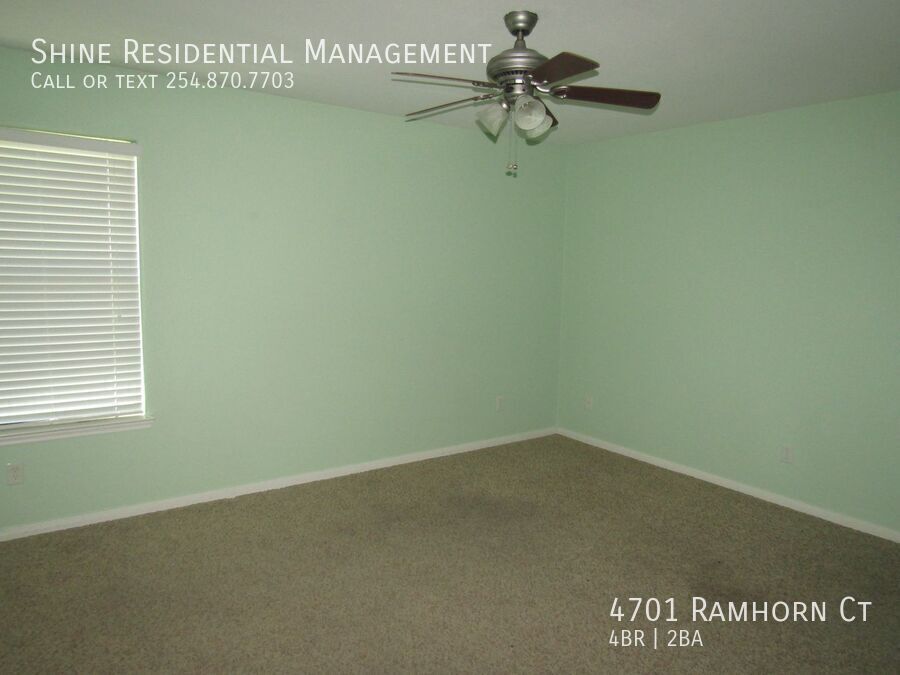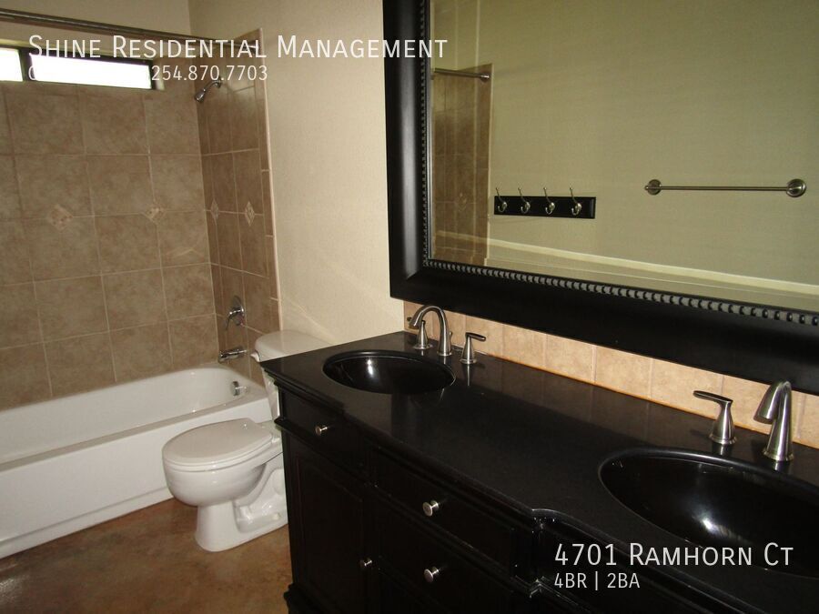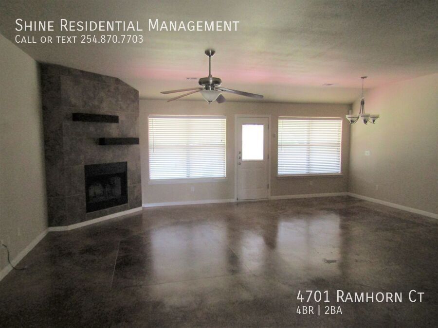 Welcome to 4701 Ramhorn Ct, a stunning 4-bedroom, 2-bathroom home located in the vibrant city of Killeen, TX. This home is a perfect blend of style and comfort, featuring a spacious layout with stained concrete floors, granite countertops, and stainless appliances. The kitchen is a chef's dream with a convenient breakfast bar, a pantry, and a microwave vent-hood. The living room is warm and inviting, boasting a cozy fireplace and faux wood window blinds. The master suite is a true retreat, complete with a walk-in closet, dual vanity, a separate shower, and a large jetted tub. Additional amenities include a disposal, garage parking, laundry hook up, ceiling fans, and central air and heat. The exterior of the home is just as impressive with a fenced yard and a covered patio, perfect for outdoor entertaining. Experience the perfect blend of luxury and convenience at 4701 Ramhorn Ct. Central Air And Heat Covered Patio Disposal Dual Vanity In Master Bath Faux Wood Window Blinds Granite Counter Tops Large Jetted Tub In Master Bath Laundry Hook Up Microwave Venthood Mirrors Seperate Shower Stained Concrete Floors Stainless Appliances