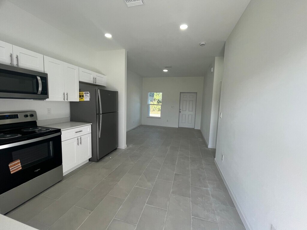 Welcome to a BRAND NEW 2 bedroom , 2 bath, one car garage single family home in a PRIME SW LOCATION of Lehigh Acres.A move-in ready gem nestled in the heart of Lehigh Acres, FL. This brand new construction offers two spacious bedrooms, including a primary bedroom with an en-suite featuring a large tiled shower. The home boasts beautiful tile flooring throughout, high modern ceilings, and an abundance of natural light. The eat-in kitchen is a chef's dream with stainless steel appliances, granite counters, wood shaker cabinets, and a full kitchen appliance package. The kitchen also offers plenty of storage with numerous cabinets and a pantry. The property sits on a large quarter acre lot with a spacious backyard, an open front porch, and a covered rear lanai. The home also includes a washer and dryer hook up in the over sized one-car garage . Storm protection-impact windows are in the whole house for added safety. Pets are also welcome in this cozy cottage. located close to SR 82 and downtown Lehigh, with easy access to FT Myers and I 75, this home is in one of the best Locations in Lehigh Acres. Don't miss out on one of the lowest-priced new construction homes in the area. - see it today!