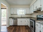 Welcome home! On a gorgeous wooded, private lot at the end of a cul de sac you will be able to sit on your back porch and relax with a drink in hand. Fully renovated, 2 bed and 2 full bath home waiting for your decorative touch! New stainless steel appliances, granite in kitchen and bathrooms as well as a stone fireplace to cozy up to at night opening up to your private deck. Walking distance to a mall with lots of shops and restaurants, schools and offices as well as easy access to downtown Raleigh, PNC, Carter Finley Stadium, Durham and RTP. Off street, private parking for both sides of duplex. Come enjoy this wooded gem among the hustle and bustle of Raleigh. PET FRIENDLY- NO breed restrictions!