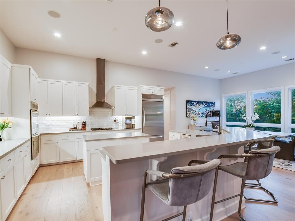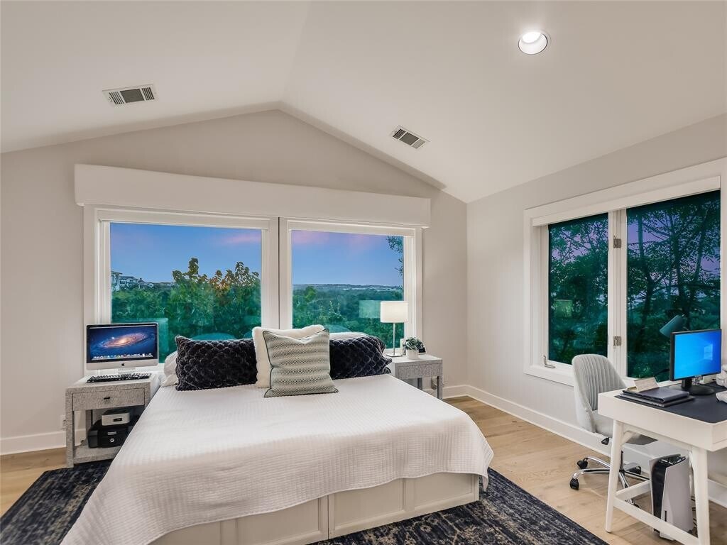 Nestled on a private cul-de-sac on an oversized lot in the exclusive Spanish Oaks neighborhood, this highly desired gated community offers spectacular views and impressive amenities. Residents enjoy miles of hiking and biking trails, a fully stocked fish camp, and a refreshing resort-style pool, along with pickleball, volleyball, basketball courts, and an inviting pavilion. This open-concept floor plan features 3 spacious bedrooms downstairs, including the primary suite, a private office on the main level, and a covered back patio for al fresco dining while enjoying privacy and nature. The second story features a game room/theater complete with an overhead projector, 4th bedroom with exquisite hill country views, and a full bath. Enjoy a gourmet, eat-in kitchen with granite counters, high-end appliances, a walk-in pantry, white oak wood floors throughout, a dual-sided fireplace, custom built-ins, and views from nearly every room. In addition to the 3-car garage, there is ample storage throughout the home. Available February 16th - Zoned to the highly sought-after Lake Travis ISD. MLS ID 2024756