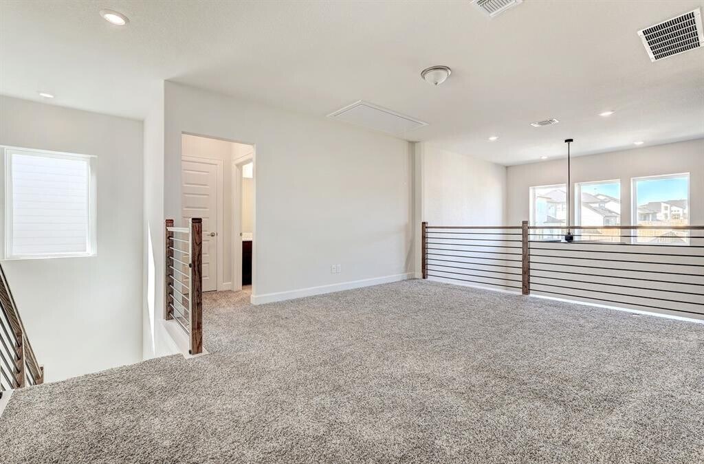 This gorgeous two-story floor plan offers 3 bedrooms, 2.5 bathrooms, a dedicated study, an extended covered patio, and a generous second-story game room, combining thoughtful design with modern comfort. With over $35,000 in updates, this home delivers exceptional value and elevated style throughout. Step inside to a dramatic entrance featuring 22' ceilings in the foyer and family room, complemented by horizontal iron railings that enhance the home’s contemporary appeal. The main floor showcases 8' interior doors and wood-look luxury tile flooring in key living areas for a warm, cohesive look. The upgraded kitchen is designed to impress, offering ENERGY STAR–certified stainless steel appliances, a 30 five-burner gas range and oven, quartz countertops, wood cabinetry, and a custom designer backsplash—perfect for both everyday living and entertaining. The private owner’s suite features a charming bay window, a spacious walk-in shower, convenient linen closet, and a custom owner’s closet with abundant storage. Upstairs, the generous game room provides flexible space for movie nights, play, or a second living area. Enjoy the custom landscaped backyard, complete with a covered patio, extensive native plants, beautifully crafted decking, and a pergola—the ideal spot to relax outdoors and take in the sunset. With its premium finishes, major upgrades, and versatile layout, this home offers the perfect blend of comfort, style, and long-term value."