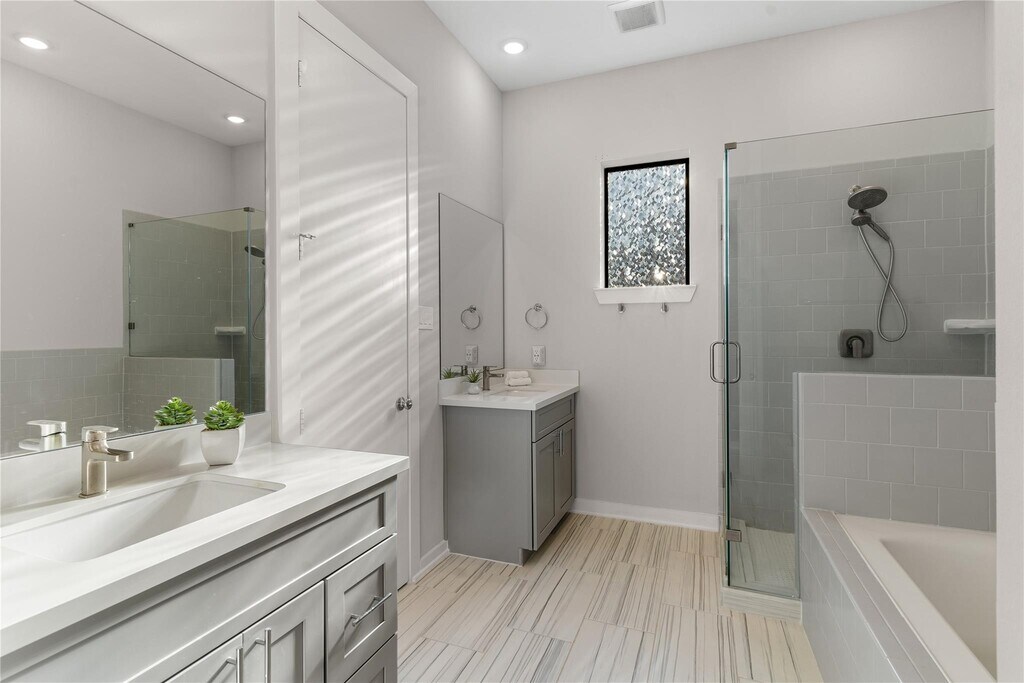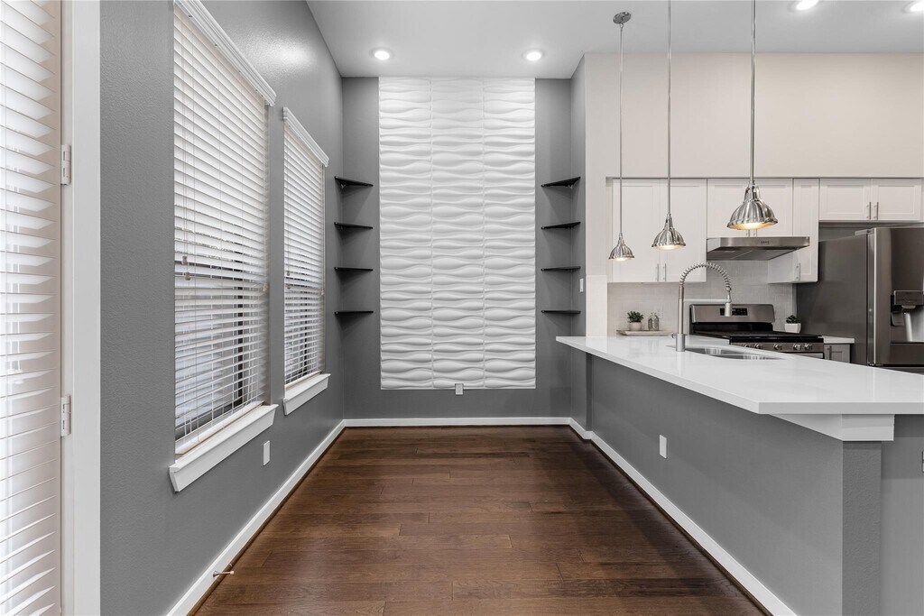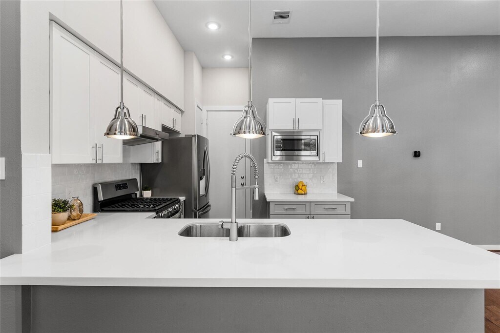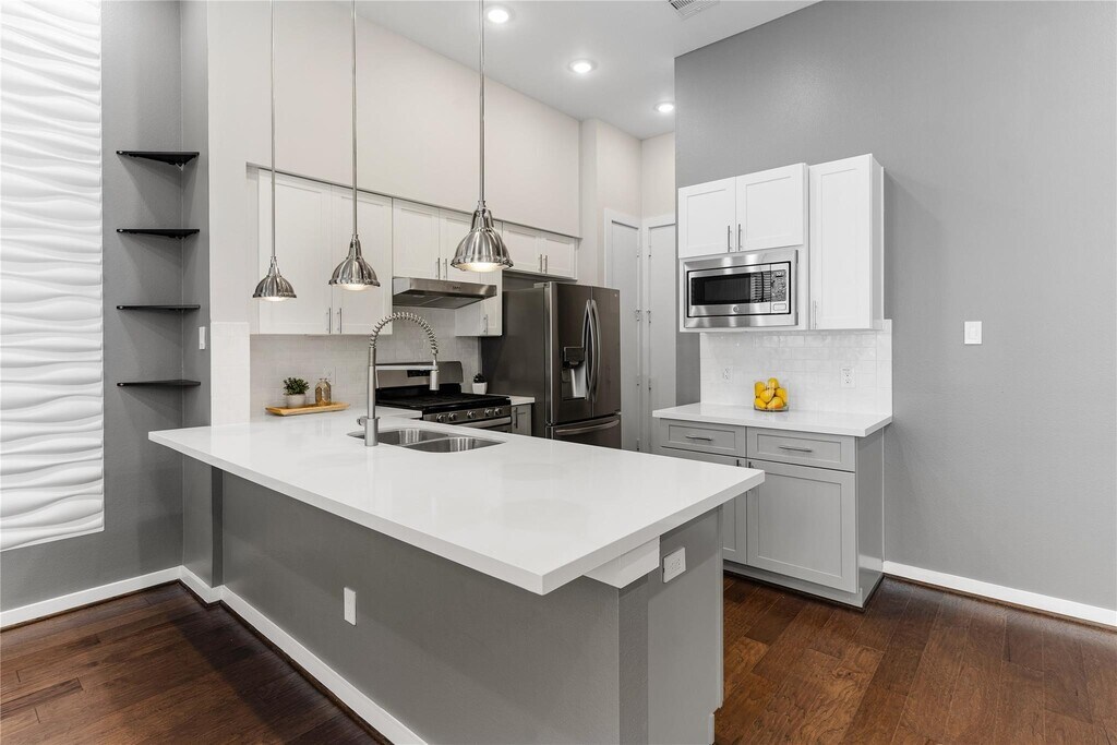 Modern living just miles away from the city! Fully gated community with your own private fenced backyard and a 2-car garage! Perfect size home with 3 bedrooms 2.5 bathrooms with the kitchen open to the dining and living room. Your kitchen has shaker style cabinetry,white subway tile backsplash,stainless steel appliances including a 5-burner gas stove. You have neutral paint,modern ceiling fans,custom closet built-ins and designer finishes throughout! Easy access to major roadways make your commute a breeze plus you are less than 10 miles from Downtown Houston!! Call for an appointment today! MLS# 97760011