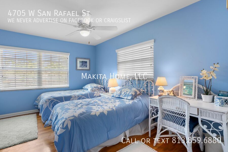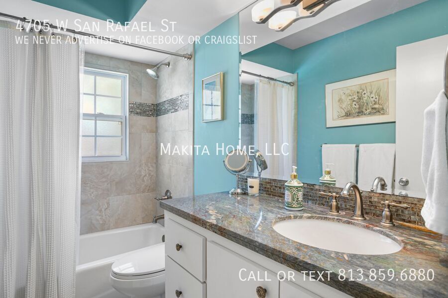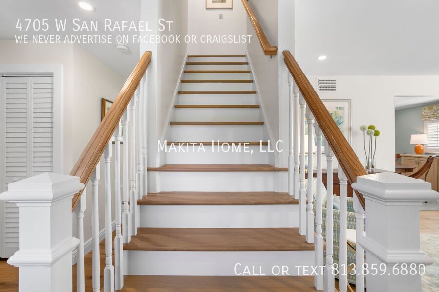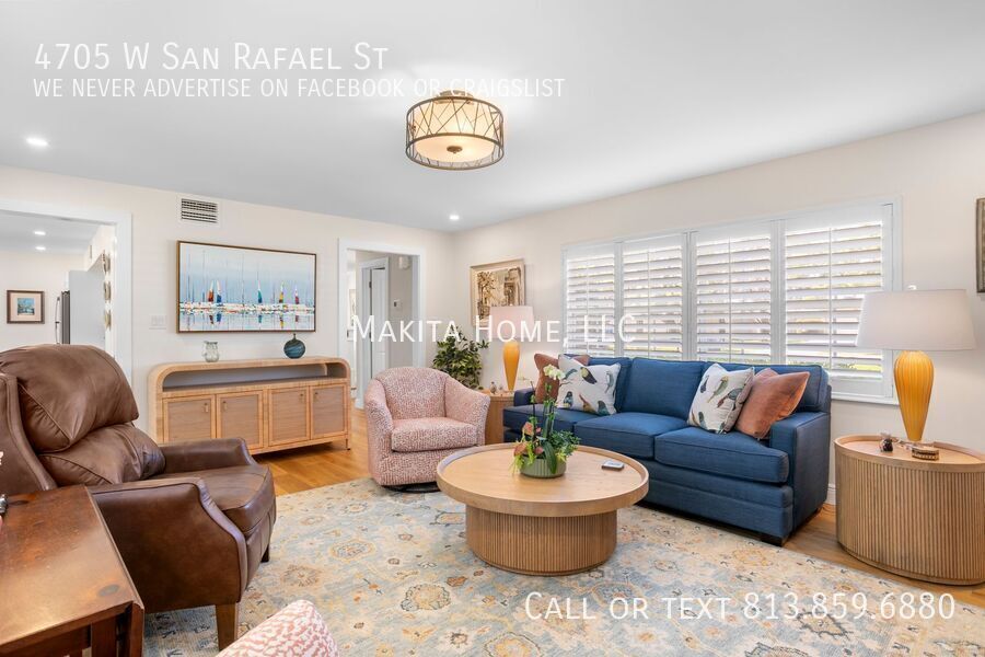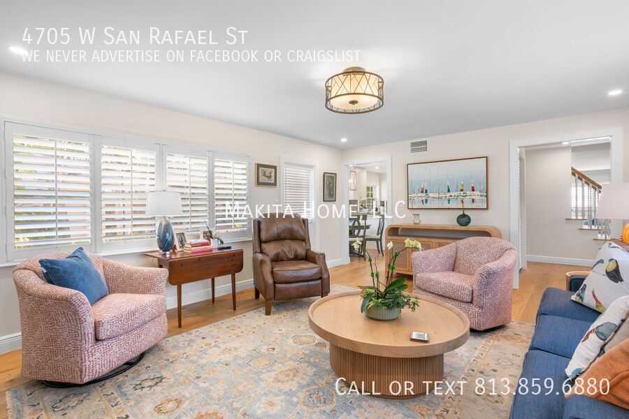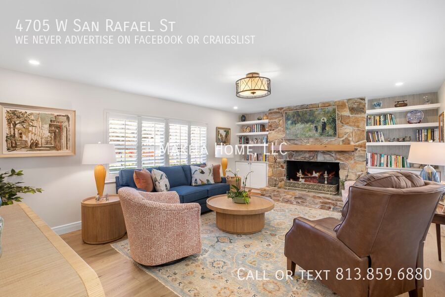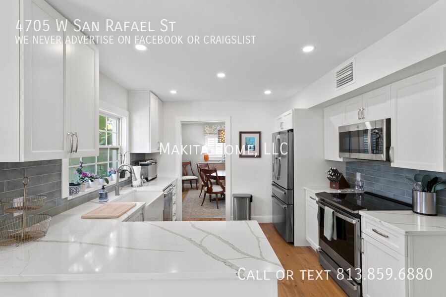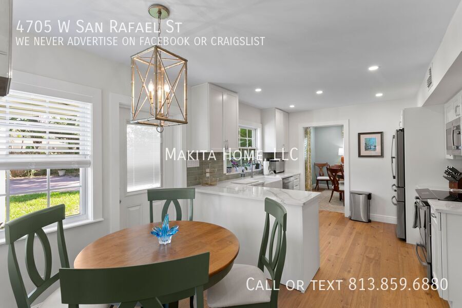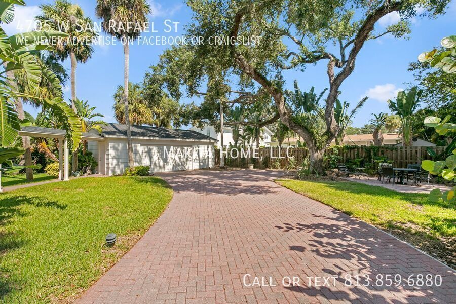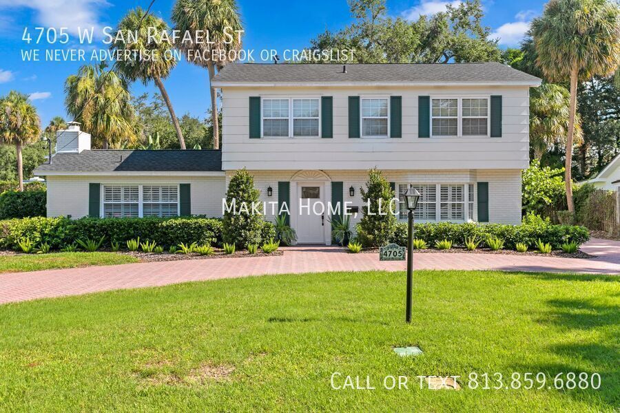 Make this stunning two-story home your next address. From the moment you step inside, you’ll be welcomed by abundant natural light that highlights the beautiful hardwood floors throughout. Designed with both comfort and entertaining in mind, the home features spacious living areas perfect for gathering with family and friends. Recessed lighting enhances every room on the first floor, adding a warm and modern touch. The impressive great room (17' x 15') offers a cozy fireplace and built-in bookshelves, creating the perfect space to relax or host guests. Off the living room the newly remodeled kitchen shines with white shaker cabinets, granite countertops, and top-of-the-line stainless steel appliances. A convenient four-seat table makes it ideal for casual dining. Through a pocket door, you’ll find the formal dining room and an inviting living room (17' x 13'), completing the thoughtfully designed first floor. A stylish half bath is also located downstairs for added convenience. Upstairs, the spacious primary bedroom (14' x 15') comfortably fits a king-size bed and additional furnishings. The ensuite bath features a step-in shower and sink, in the bedroom is also a wide vanity offering generous drawer storage, a large mirror, and dedicated lighting. Three additional bedrooms share an updated hall bath complete with a tub/shower combination and ample counter space. Outside, a paver U-shaped driveway welcomes you in front, with an additional driveway along the side leading to a detached two-car garage behind the home. A large grassy front yard and an oak-shaded backyard provide plenty of room to relax, entertain, and enjoy the outdoors. A new front-loading washer and dryer are included for your convenience. Pets: Dogs 20lbs and under are allowed, no cats Located on a pristine oak lined road in Culbreath Heights. Convenient access to I - 275, the Gandy Bridge and the Leroy Selmon Expressway. Only 4 miles from the Tampa airport and 6 miles from downtown Tampa. Close to all the shopping, restaurants and other hot spots that south Tampa offers. All Makita Home residents are enrolled in the Resident Benefits Package (RBP), which includes renters & liability insurance, HVAC air filter delivery, on-demand pest control, and more (details available upon application). Apply now, this home wont last long!