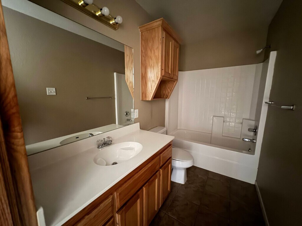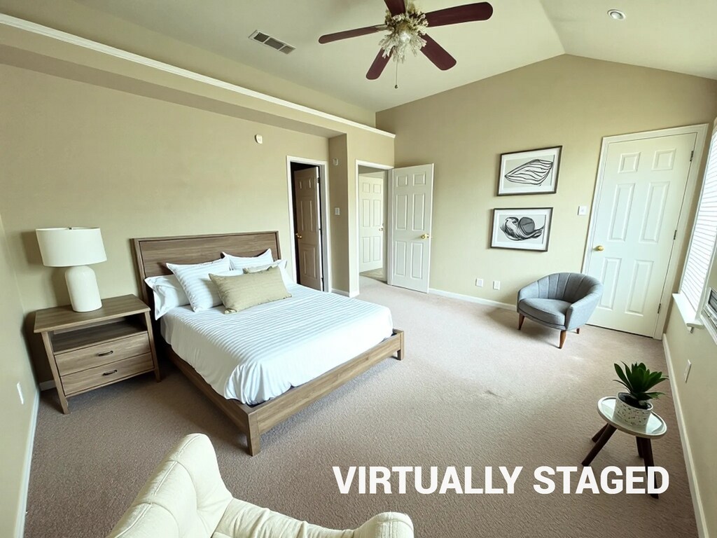 View 360 Virtual Tour: Welcome to this 3-bed 2-bath duplex in Killeen, Texas featuring a combination of carpet and ceramic tile flooring. Enjoy vaulted ceilings and a spacious kitchen with plenty of cabinet storage and traditional white appliances. Ceiling fans are installed throughout the home for added comfort. Bathrooms offer ample cabinet space, and the fenced-in yard provides added outdoor convenience. Disclaimer: The furnishings or enhancements shown are AI-generated and intended for inspiration only. They may not reflect the actual scale, condition, or current features of the property.