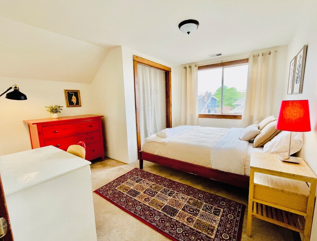 🏡 What’s Included•Fully furnished private room with cozy, modern décor•Bright open dining and living area with huge south- and west-facing windows — filled with natural light•Separate kitchen with all essentials provided•Front porch, small front yard, and side yard for relaxing outdoors•Shared bathrooms (housecleaning provided)•Quiet, peaceful home environment with relaxed vibe (set quiet hours)•Super-fast WiFi — perfect for remote work or streaming•All utilities included •Walk to cafés, art galleries, yoga studios, and shops in the Alberta Arts District•Free, easy street parking + quick access to downtown (Bus #8 stops across the street)⸻💫 Perfect For•Nomads, remote workers, and traveling professionals•Short-term work assignments or creative projects in Portland•Anyone who values a calm, walkable, light-filled home base Welcome to your Cheerful Alberta Arts Retreat — a cozy, walkable haven in one of Portland’s most creative neighborh...