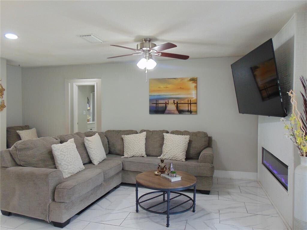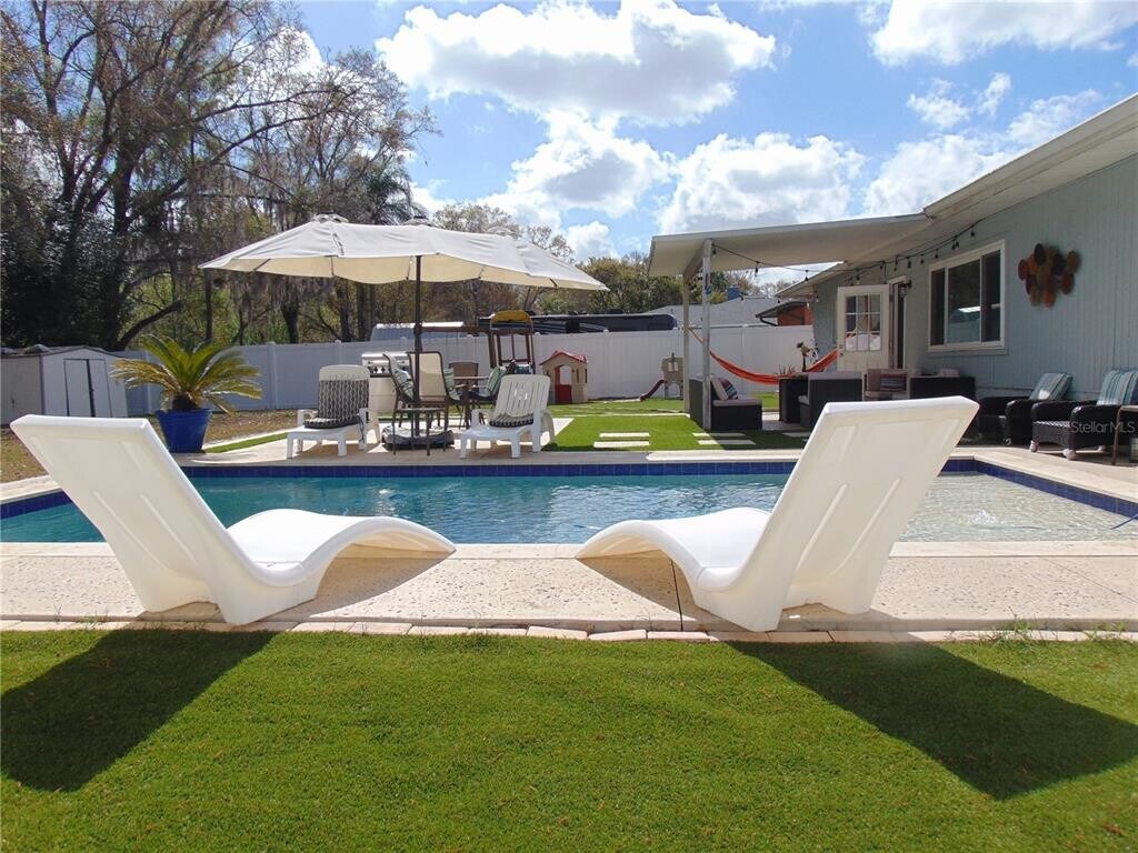 Welcome to this beautifully maintained 4-bedroom,2-bath saltwater POOL home designed with everyday living and family connection in mind. Situated on a spacious conservation lot with no rear neighbors,this home offers both privacy and room to grow. Step inside to an open-concept layout where the kitchen becomes the heart of the home... featuring a massive island with plenty of seating,perfect for family meals,homework time,or gathering with friends. The living spaces are warm and inviting with an electric fireplace,while a second fireplace in the primary bedroom creates a cozy retreat at the end of the day. With a sunroom and a versatile bonus room ideal for a home office,playroom,or flex space,there’s room for everyone to spread out and still feel connected. The convenient indoor laundry room adds to the ease of daily living. Outdoors is where this home truly shines. Enjoy a saltwater pool,covered patio for shaded lounging,and a turf play area perfect for kids and pets alike. A dedicated dog run,storage shed,and expansive backyard make it easy to embrace an active,outdoor lifestyle. The large driveway offers ample parking for family and guests,while the welcoming glass front door with sidelights sets the tone for the warmth inside. This is more than just a rental... it’s a place to settle in,spread out,and feel right at home. Pool 2024,Backyard Patio 2024,PVC Fence 2024. Non-smoking home. No smoking permitted indoors. See... Fall in Love... Make it Your Own!! MLS# TB8493183