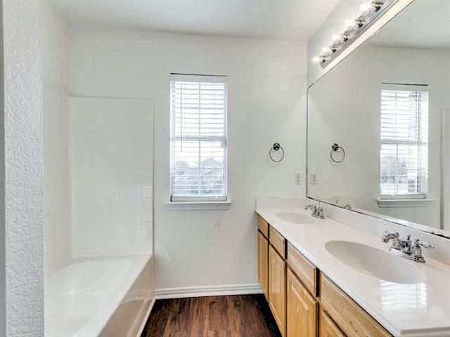 MOVE-IN READY 3-BED, 2.5-BATH MANSFIELD GEM PRICE REDUCED!!!! 1 WEEK RENT FREE MOVE IN SPECIAL!!! Discover this stunning 3-bedroom, 2.5-bathroom gem in the highly desirable Mansfield, TX community. From the moment you step inside, you’ll be greeted by warm, open living spaces designed for both comfort and style. The spacious living room features a cozy fireplace and ceiling fans—perfect for relaxing year-round. The beautifully designed kitchen comes fully equipped with a refrigerator, stove, and dishwasher, making meal prep and gatherings a breeze. Upstairs, your master suite awaits—a true retreat with a dual-sink vanity for convenience and comfort. Every room is enhanced with elegant laminated hardwood flooring, giving the home a modern and sophisticated touch. Step outside to enjoy your large private yard—ideal for weekend barbecues, family fun, or simply soaking in the Texas sunshine. With its inviting layout, stylish finishes, and unbeatable location, this home is the perfect place to create lasting memories.