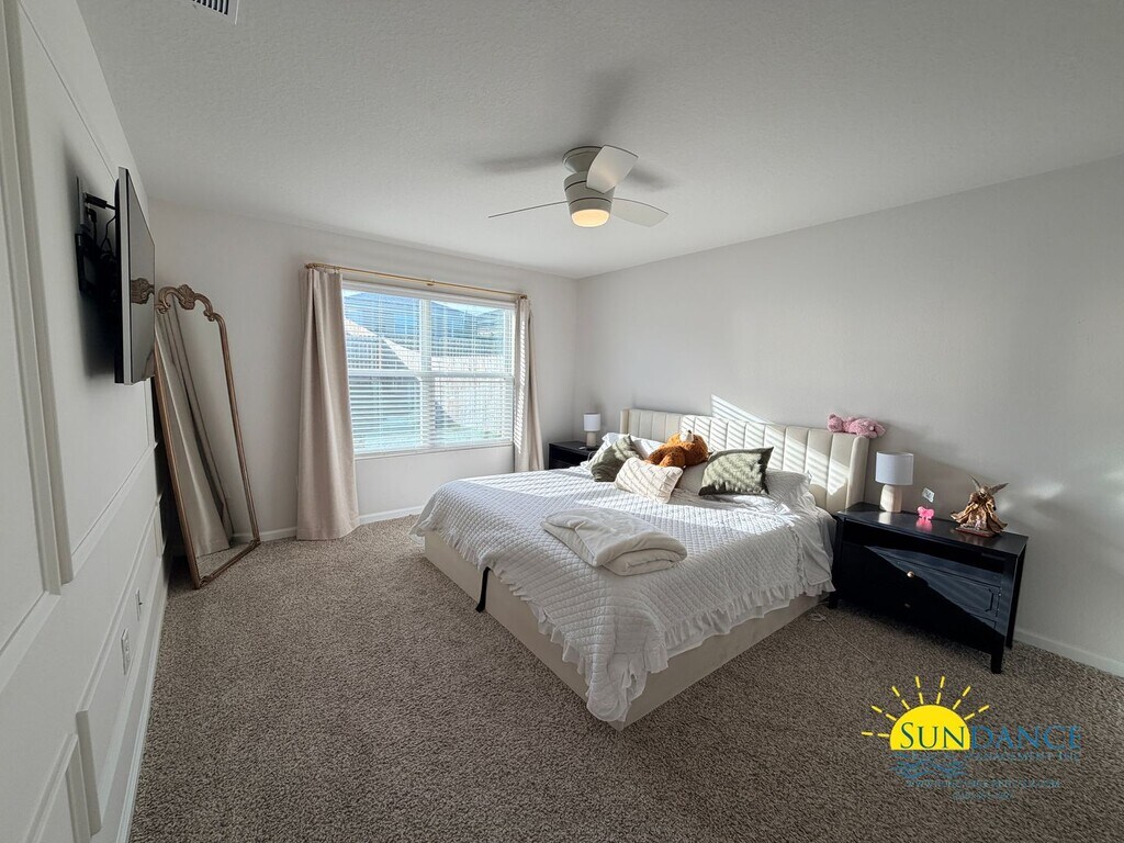 Move-In Special: $500 Off 1st Full Months Rent with a 2 year lease option! Located in the desirable Patriot Ridge community of Crestview, this beautifully maintained 4-bedroom, 2-bathroom home offers access to a community pool and neighborhood sidewalks. It features an attached 2-car garage along with additional driveway parking and this property is a true must-see! The home boasts a split-bedroom floor plan with spacious main living areas with TV Mount as-is, recessed lighting, vinyl flooring throughout the main living areas, and cozy carpet in the bedrooms. The modern kitchen includes upgraded appliances, a breakfast bar, and a walk-in pantry, perfect for both everyday living and entertaining. The primary suite features a dual vanity and a double walk-in closet, while three additional bedrooms share a full hall bathroom. A laundry room with a washer and dryer as-is is also included for added convenience, and the home also includes a security system (AS-IS). Outside, enjoy a front & back covered patio and a partially fenced backyard ideal for relaxing or entertaining. Come see what makes this home stand out! HOA Rules and Regulations Apply. Pets max 2 are accepted with a non-refundable $250 per pet plus a $50 admin fee (subject to owner approval) No smoking is permitted.