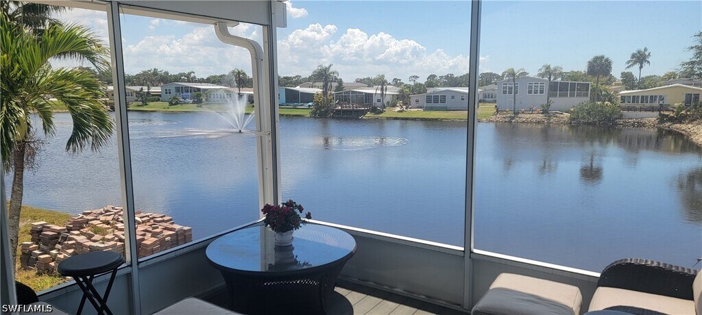 For Rent NEW 2024 manufactured home which sits on a canal at one side and the lake on the other side. Water views are everywhere! Furnished home has 2 bedrooms 2 baths,plus a office / den. From this bonus room is a screened room which overlooks the lake with a fountain and the Gulf access canal. This is a 55 plus community,no children. no smokers or no pets. The covered boat lift would accommodate a 24 foot boat weighing about 7000 lbs. is an optional feature that can be negotiated. This amenity rich community has an active clubhouse w/ planned activities,pool,hot tub/spa,tennis,pickle ball,shuffleboard,basketball,boccie ball. The community park offers a picnic area,tiki hut w/ swings,& fresh water fishing on the lake pier and community kayaks for residence & guests. The community proudly presents direct access into Estero Bay then into the Gulf of Mexico from the private boat ramp for all residents to use. Once on the water there is fishing,shelling,beaches,waterfront restaurants and watching dolphins,and sunsets before returning home in minutes! Spring Creek Village has a convenient location. Coconut Point Mall and the new Lee Health at Coconut Point are just minutes away. The Hertz Sports arena,restaurants,shopping,public golf courses,FGCU,Fort Myers International Airport are all close by.