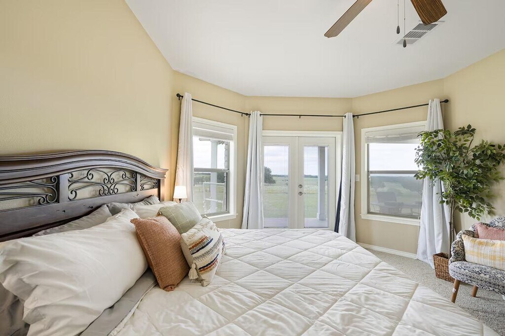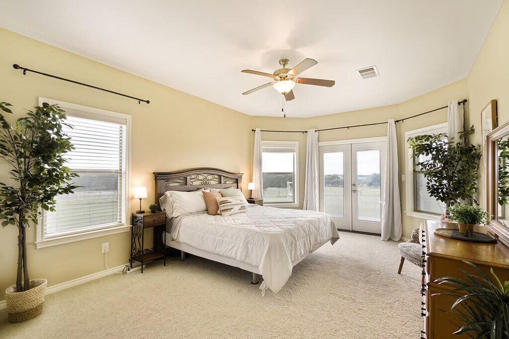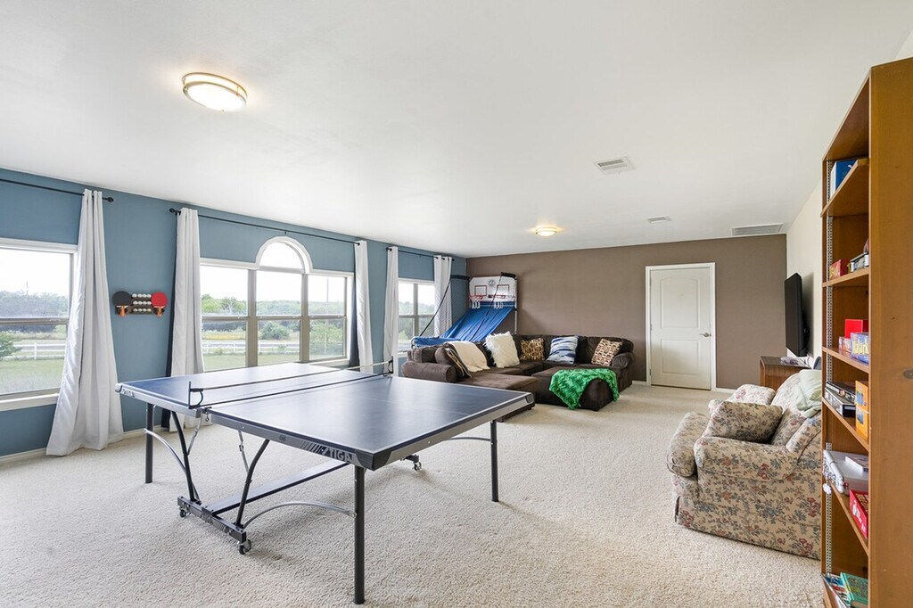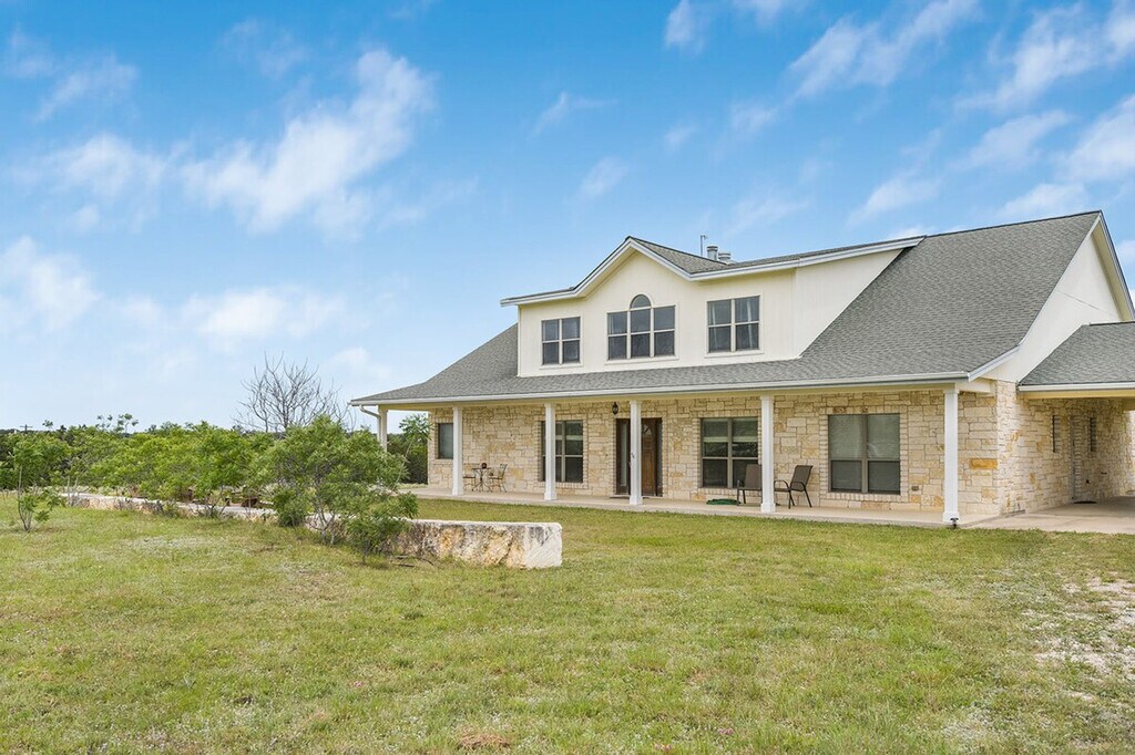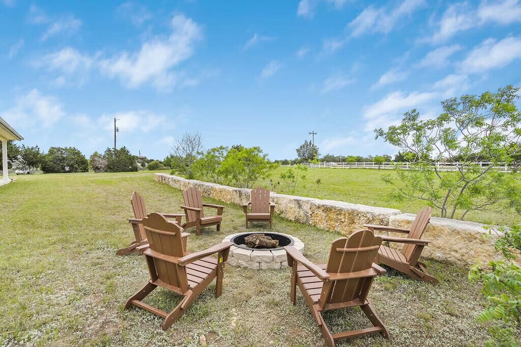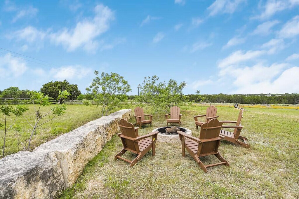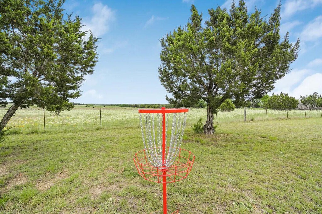 Welcome to this inviting family home nestled in the heart of the Texas Hill Country, offering 14 acres for your enjoyment. This spacious property is perfect for families and groups looking to unwind and have fun, featuring a disc golf course, wiffle ball equipment, a fire pit, and stunning panoramic views of the Liberty Hill Countryside. Inside, you'll find a large master room with a king-size bed, double patio doors, and blackout curtains. There are two guest rooms with queen beds and blackout curtains, and a large game room with three twin beds, a pull-out sofa bed, a queen air mattress, and a large couch. The fully equipped kitchen includes all essentials, an ice cream maker, and a griddle. The game room offers ping pong, basketball, board games, and more, while fast Starlink internet ensures connectivity. Guests have access to the entire fenced-in area on the property. The property is home to goats and herding dogs, so guests are asked to stay within the 3-acre fenced-in perimeter at the front part of the property. Guests are encouraged to enjoy the full wiffle ball field, outdoor fire pit, custom disc golf course, and game room with basketball and board games. A laptop computer is not included.