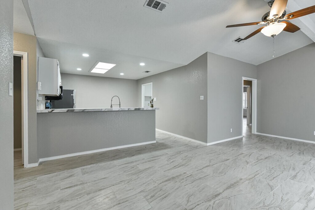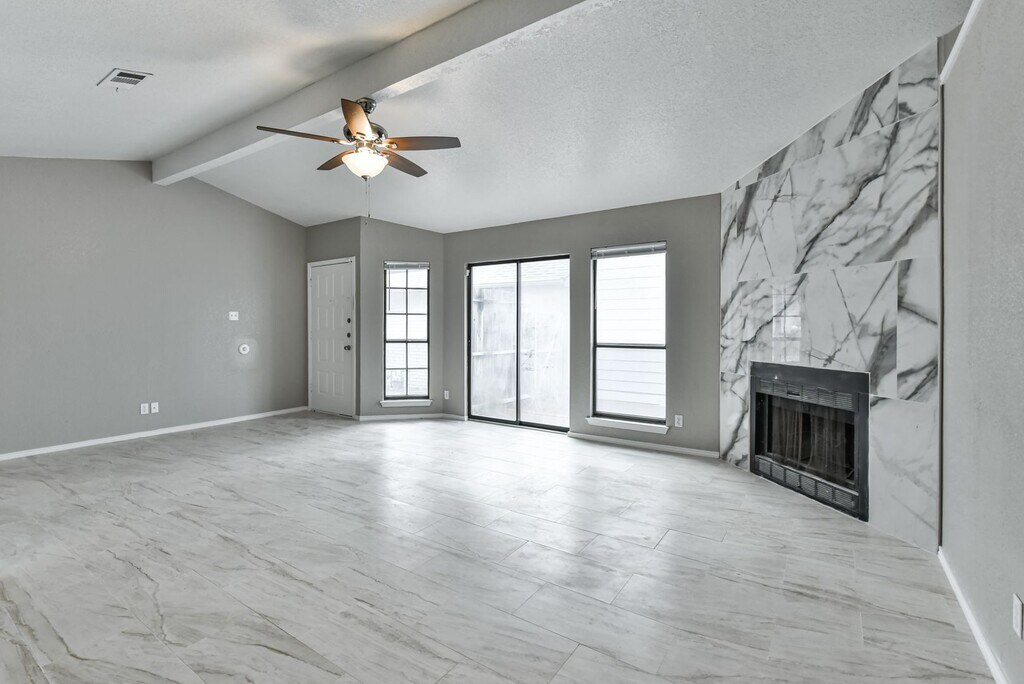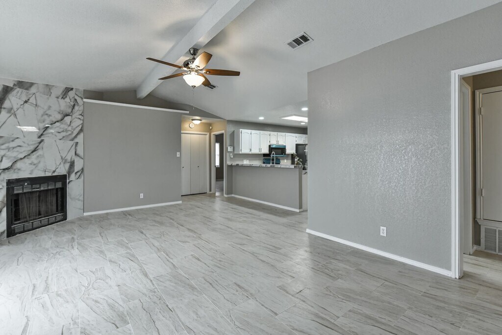 Step into this inviting brick home that blends comfort and functionality. The interior features a spacious open-concept living area with sleek tile flooring, a cozy fireplace, and a ceiling fan that adds both style and airflow. The layout flows seamlessly into the kitchen, making it perfect for everyday living or entertaining guests. Natural light fills the space, creating a warm and welcoming atmosphere throughout. Outside, the property offers a classic brick exterior with a generous yard—ideal for outdoor activities, relaxation, or enjoying your time at home. This rental offers a great balance of indoor comfort and outdoor space, making it an ideal place to call home.