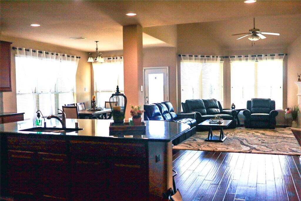 This home offers beautiful curb appeal with a brick and stone elevation and a welcoming front porch. Rich engineered hardwood floors greet you at the entry. Two secondary bedrooms at the front of the home feature ample closet space. The open-concept kitchen flows seamlessly into the dining area and spacious family room,complete with a gas fireplace. The kitchen is well-appointed with abundant cabinetry,a large island,double ovens,a built-in microwave,and a gas cooktop. The generous primary suite offers direct access to the backyard. The ensuite bath features a large corner soaking tub & a separate shower. Step outside to an impressive backyard with a brick wall,extended patio and no rear neighbors—perfect for outdoor gatherings. Additional highlights include a refrigerator,washer,& dryer that stay with the home. Zoned to excellent schools in FBISD with no history of flooding,this home offers a functional layout and inviting spaces for comfortable everyday living. MLS# 92525264