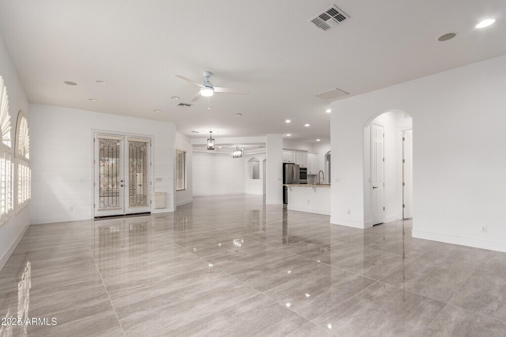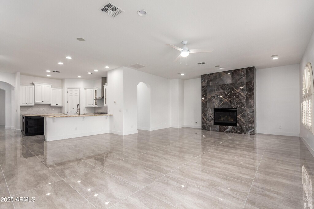 Welcome to 4711 E Buckboard Ct,nestled in a quiet cul-de-sac in the highly sought-after,award-winning Power Ranch community in Gilbert. This beautifully remodeled home blends fresh,modern updates with timeless luxury charm. Inside,you'll find premium high-gloss tile flooring throughout,a stunning fireplace surround,modernized kitchen and bathroom cabinetry,brand-new stainless steel appliances,and fresh interior and exterior paint. Even the garage has been upgraded with sleek new epoxy flooring. Step outside into your private backyard oasis,complete with a tranquil rock wall water feature,jetted hot tub,cozy fire pit,iron gates,and low-maintenance,high-impact landscaping. A covered patio and additional private side patio create multiple spaces for entertaining and