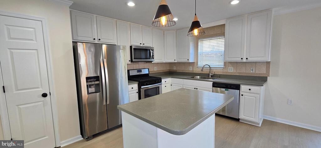 Rarely do opportunities like this come along – a remarkable end-of-group townhome with a coveted 2-car garage, nestled in the desirable Lyons Gate community in Owings Mills. This stunning townhome exudes brightness and space, featuring three fully finished levels adorned with recessed lighting and elegant crown molding throughout. The main level sets the stage for both comfortable living and entertaining, seamlessly flowing from the inviting living room to the well-lit eat-in kitchen. The kitchen boasts an abundance of cabinets, an island perfect for quick bites, a pantry for all your culinary essentials, and modern gas cooking, all opening up to the dining area. For added convenience, there's a thoughtfully placed powder room on this level. Ascending to the upper floor, you'll find the luxurious Primary suite, a true haven for relaxation. It showcases a vaulted ceiling, a spacious walk-in closet, and an ensuite bath with a double vanity, a rejuvenating jetted tub, and a glass-enclosed shower. Additionally, there are two more generously sized bedrooms, each equipped with ceiling fans, a well-appointed full bathroom, and a practical hallway laundry area complete with shelving. The lower level offers versatility with its expansive family room, adorned with new luxury vinyl plank flooring. This space is perfect for creating a recreation or media room and even has a rough-in for an additional bathroom. Beyond, you'll discover a walk-out to the covered back patio and yard, ideal for outdoor enjoyment. For those who appreciate outdoor living, the freshly painted deck off the dining room is a delightful spot to watch the sunset and host summer BBQs. Situated on a quiet cul-de-sac within a pedestrian-friendly community, this home is conveniently located near parks, shops, dining options, and a short drive to the Metro, 795, and 695. Don't hesitate – schedule your tour today to make this exceptional townhome yours!