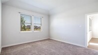 Welcome to this stunning 2024-built home in the prestigious Eastridge community. This residence combines modern elegance with practical living spaces. The open-concept layout on the main floor features a spacious island kitchen with white shaker-style cabinets, sleek tile backsplash, stainless steel appliances, and quartz countertops, perfect for culinary enthusiasts and entertainers. The primary bedroom on the main level, alongside a guest suite, offers a tranquil sanctuary with natural light and spa-like en-suite bath with dual vanities and a large shower with a built-in seat. The back patio overlooks a scenic pond with calming fountains, ideal for morning coffee gatherings. The 4th bedroom could be used as a game room. Additional features - durable vinyl plank flooring downstairs, stylish shaker doors, and recessed LED lighting. Residents enjoy a community pool, fitness center, basketball court, hiking and biking trails, playground, and clubhouse.