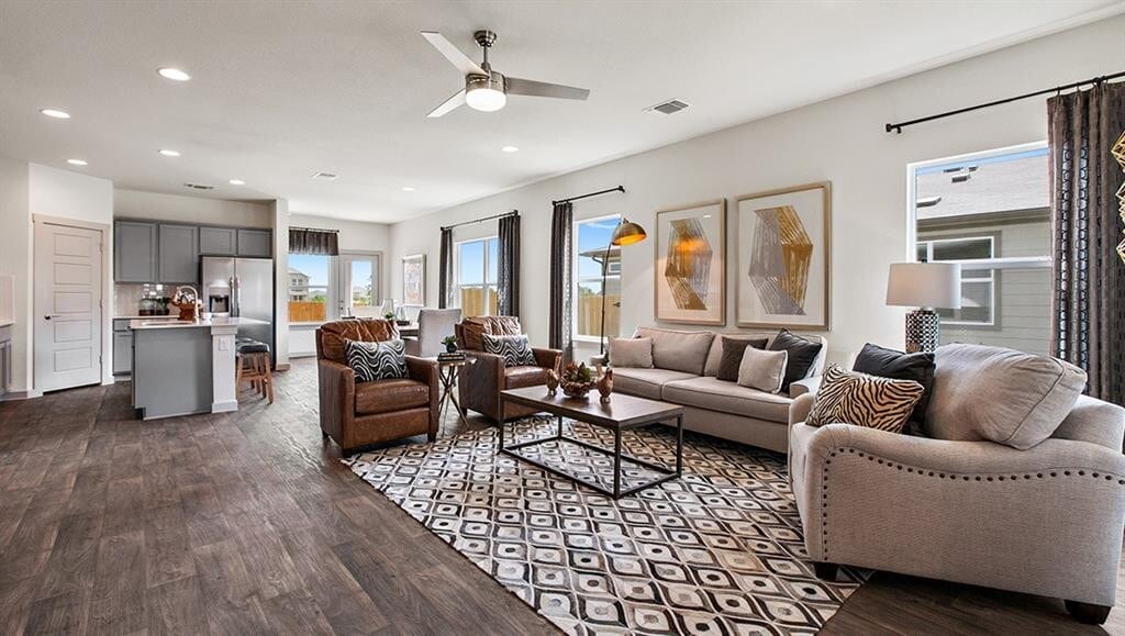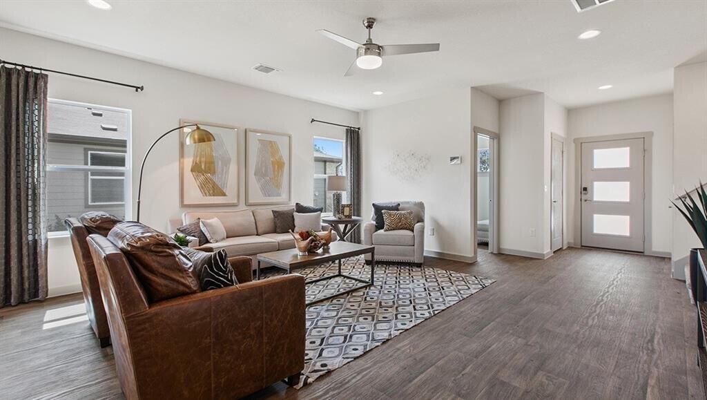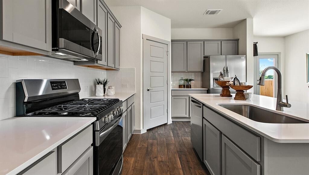 Washer/Dryer & SS Fridge Provided! Great Open Layout that Combines the benefits of both 1 & 2 Story Home! 3 bedrooms (primary and 2 large guestrooms) and 2 full bathrooms downstairs. Gameroom, large bedroom and full bathroom upstairs. Corner lot with unobstructed natural light into the main living area! Open-floor plan home with modern features including a family-friendly kitchen with quartz counter tops, gray cabinets, stainless-steel appliances, kitchen island and a fenced private corner backyard. Community amenities include access to a pool, playground and clubhouse. Location, features, Austin utilities and Pflugerville schools, quick access to East Village, Tech-Ridge, Domain, Samsung, Tesla, Applied Materials. airport & Downtown. *Furnished Interior Pictures and Virtual tour are for representation only.*