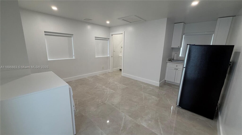 Cozy efficiency completely renovated in 2025, new roof, new impact windows, new split A/C, new All-in-one Washer and Dryer, new Fridge, new dual electric cooktop, new floors, and new bathroom. Private entrance completely separated from the main house, parking for one car only, screening process is a must, only one tenant allowed. PLEASE DO NOT DISTURB TENANTS OF THE MAIN HOUSE, DO NOT GO TO THE PROPERTY WITHOUT CONFIRMING WITH LISTING AGENT. SECURITY CAMERAS ONSITE WITH 24 MONITORING.