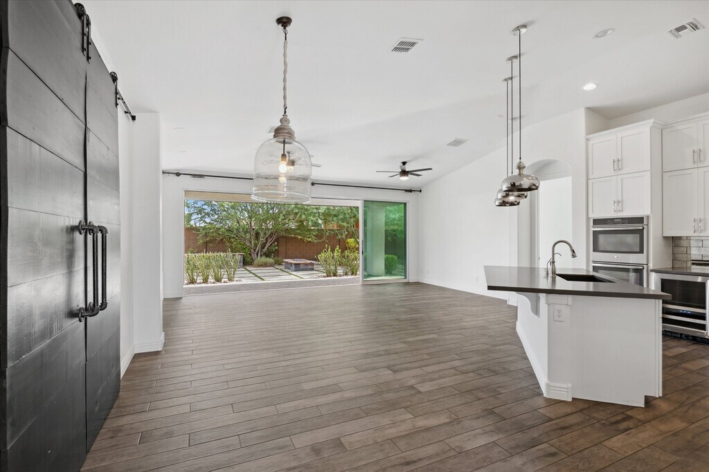 Charming 3-Bedroom Home in Eastmark – Mesa, AZ Welcome to this beautiful 3 bedroom, 2 bathroom single-family home offering 1,743 sq. ft. of comfortable living space. Located in the desirable Eastmark community of Mesa, this home features modern finishes, spacious living areas, and a thoughtful layout perfect for both relaxing and entertaining. The open-concept kitchen includes white shaker cabinets with extended uppers, a wine fridge, granite countertops, and a gas cooktop stove. A large three-panel sliding glass door connects the living space to the backyard, bringing in natural light and extending the home's entertaining area. The bathrooms also feature granite countertops, while the primary suite offers a spa-like tile shower and walk-in closet. Step outside to a beautifully designed backyard with pavers and a built-in gas fireplace — perfect for cozy evenings and outdoor gatherings. Eastmark provides fantastic amenities including parks, walking paths, and community events, all within a convenient Mesa location with easy access to the 202 freeway, shopping, dining, and schools. Available immediately for rent is this 3 Bed 2 Bath single level home located in the award winning community of Eastmark! This home features an open floor plan with a large great room and kitchen area complimented by a multi-panel sliding back door. The kitchen includes large cabinets with upper cabinetry, black quartz countertops w/ backsplash, double oven and stainless steel appliances. Master bedroom features a large walk-in closet, granite double vanity and tiled shower. Front wing of the home includes a separate den that could be used as a bedroom and 2 other large bedrooms. Backyard is well landscaped with pavers, turf and a fireplace. One Way Homes offers a fully refundable security deposit and no monthly admin fees! Move in must be within 14 days upon application approval. Tenant responsible for all utilities and landscaping