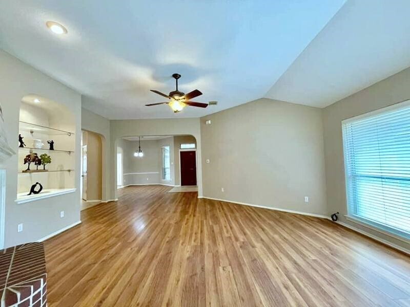 FULLY REMODELED,Gorgeous One story 4-side brick Park-Facing House W/3 bdrm,2 bath,a study room and 2 garage is located in Plantation Creek. Easy access to HWY 6,59,90. Home features NEW Roof,Wood floor,fresh paint and high ceiling thr-out. NO Carpet in the house. Island kitchen W/granite counter-tops,5-burner gas stove,eat-in breakfast room. Side-by-side fridge is included! Formal dining is off the entry. Spacious formal living W/Built-in shelves,cozy fireplace. Over-sized Primary suite W/Walk-in closet. Study room W/Ceiling fan,it can double as a nursery room. FULLY sprinklered,ceiling fans in all bdrm. Big backyard W/Covered patio is a plus. Please call now for a house tour. MLS# 63569631