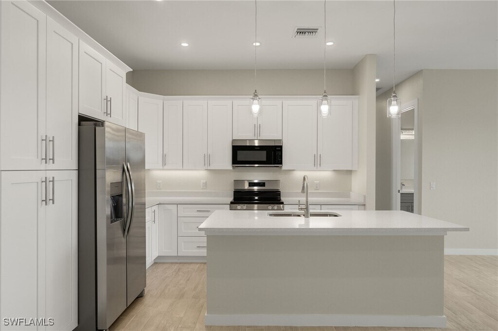 AVAILABLE NOW - Outstanding & Brand New Single Family Home located in the Centennial neighborhood of Lehigh Acres,available for Annual Rental. This spacious home features 3 Bedrooms,a versatile Den/Flex Room,and 2 high-end full bathrooms. The Open-Concept Great Room provides a harmonious flow between the Split-Bedroom living spaces,perfect for families,entertainment & the enjoyment of everyday life. Premier Modern Finishes throughout the interior,combining top-grade 12x24 Custom Tile & Waterproof Luxury Vinyl Plank flooring,integrating with Tray Ceilings and Recessed Lighting that embody sophistication. The Primary Bedroom is the perfect private retreat,complete with generous walk-in closet,En-Suite Bathroom,Open Shower & Custom Bench,Mosaic Tile Inlays,and a Luxurious Rain Showerhead. Dual vanities with Quartz countertops and elegant Shaker-Style Cabinetry complete the Spa-like atmosphere. Ample yard space with upgraded landscaping & a spacious covered Lanai. Optimally located near shopping,dining,entertainment,and schools,making it a perfect choice for families & professionals. This property is one of two available rentals,side by side,each with a reverse mirrored layout. Choose your favorite today or call the listing agent to discuss rental options for both properties!