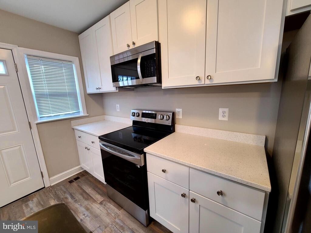 This fully renovated brick front town home greets you with an open floor plan and a calming, neutral decor. Features luxury vinyl plank floors throughout main level. Also kitchen w/ 36 cabinetry, stainless steel appliances, island and granite countertops. Two well-appointed full bathrooms upstairs and in the basement. Laundry hook-ups in basement and large rec room area perfect for relaxing or entertaining. Recent HVAC / central AC ensures warm winters and cool summers. Ample off street parking in the rear. Make your appointment today!"