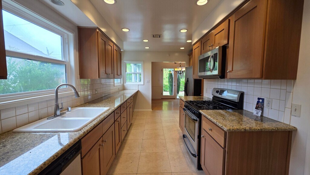 Sherman Oaks home, AVAILABLE FOR LEASE! Amenities include: single-story, 3BR + 2BA floorplan w/almost 1800 SQF; living room w/fireplace + built-ins; kitchen w/granite countertops + stainless steel appliances (refrigerator, stove/oven, dishwasher + microwave included); dining area; in-unit laundry w/washer + dryer provided; central HVAC; carpet + hardwood flooring; backyard w/covered patio + sprinkler system; attached, 2-car garage + driveway for parking; gardening service included; sorry, no pets allowed. For more info or to view this listing, please call us at . All showings must be scheduled through our office + confirmed prior to appointment. Applications, our Application Instructions + Pet Policy are available through our website, under the Vacancies tab. Occupants 18 or older must submit an application. Good credit, rental history + VERIFIABLE income are required.