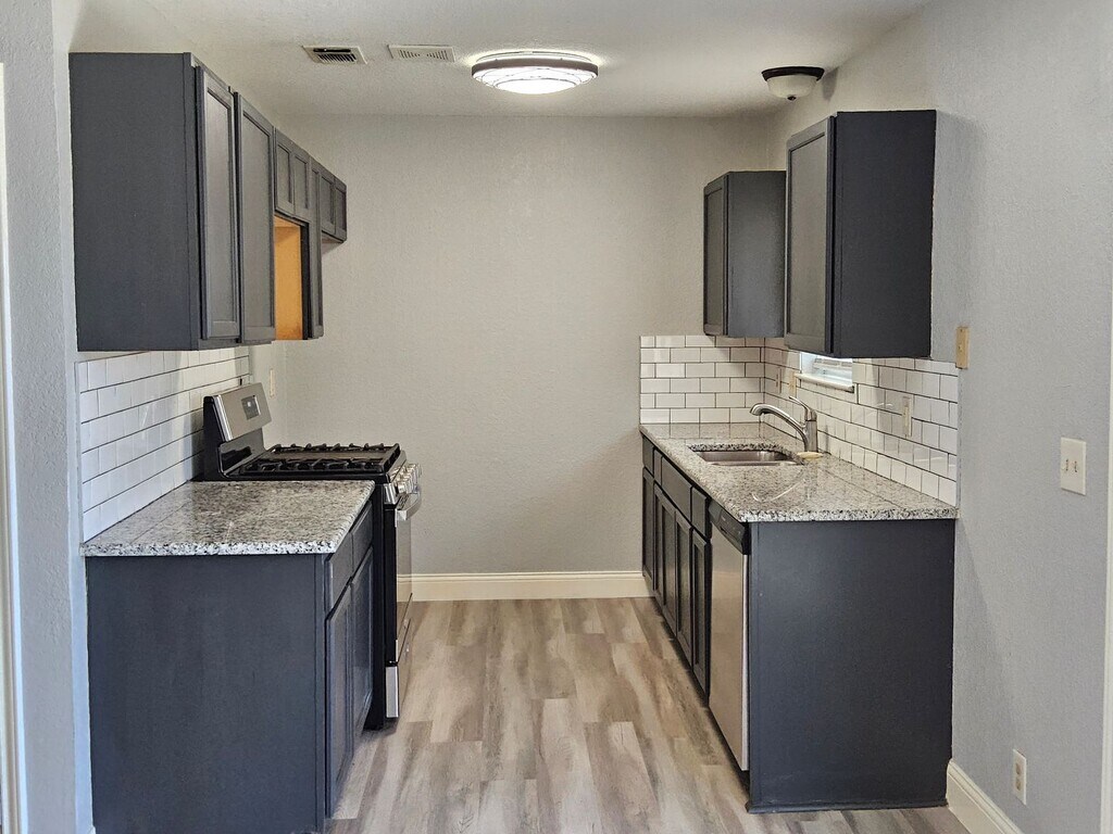Nestled in an established, inviting neighborhood, this charming 3-bed, 1.5-bath single-family home offers modern comfort and timeless appeal. Step inside to find luxury vinyl plank flooring throughout and a beautifully updated kitchen featuring granite countertops, a gas range, and a stainless-steel microwave. The functional layout includes a 1-car garage for added convenience, while the spacious, fenced backyard provides the perfect setting for outdoor living, pets, or play. Move-in ready and full of character, this home is an ideal blend of style, comfort, and everyday practicality.