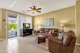 Beautiful Wildflower model for lease in the 55+ gated community of Trilogy at Power Ranch. This N/S facing home offers approximately 1,369 sq. ft. with an open floor plan including a kitchen with granite counters,breakfast bar,pantry,and all appliances. The extended primary suite features a bay window,walk-in closet,linen closet,and private bath with walk-in shower. The den/office can be used as a guest bedroom with access to a full bath. Enjoy resort-style amenities including golf,pickleball,pools,fitness center,and community activities. Golf cart included,covered patio,and two-car garage complete this move-in ready home ideal for seasonal or long-term rental. 6 Month minimum rental term,prefer 1 year.